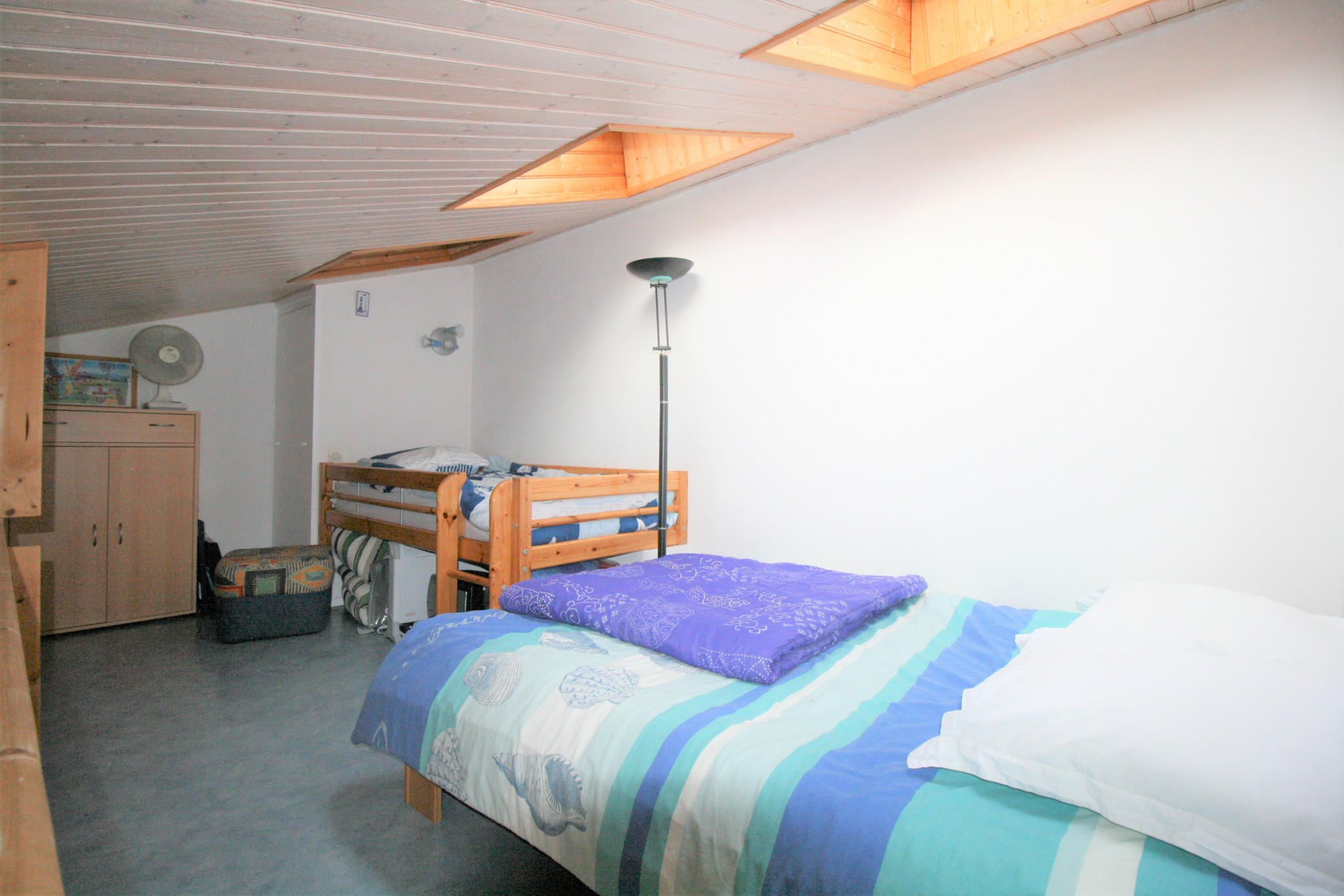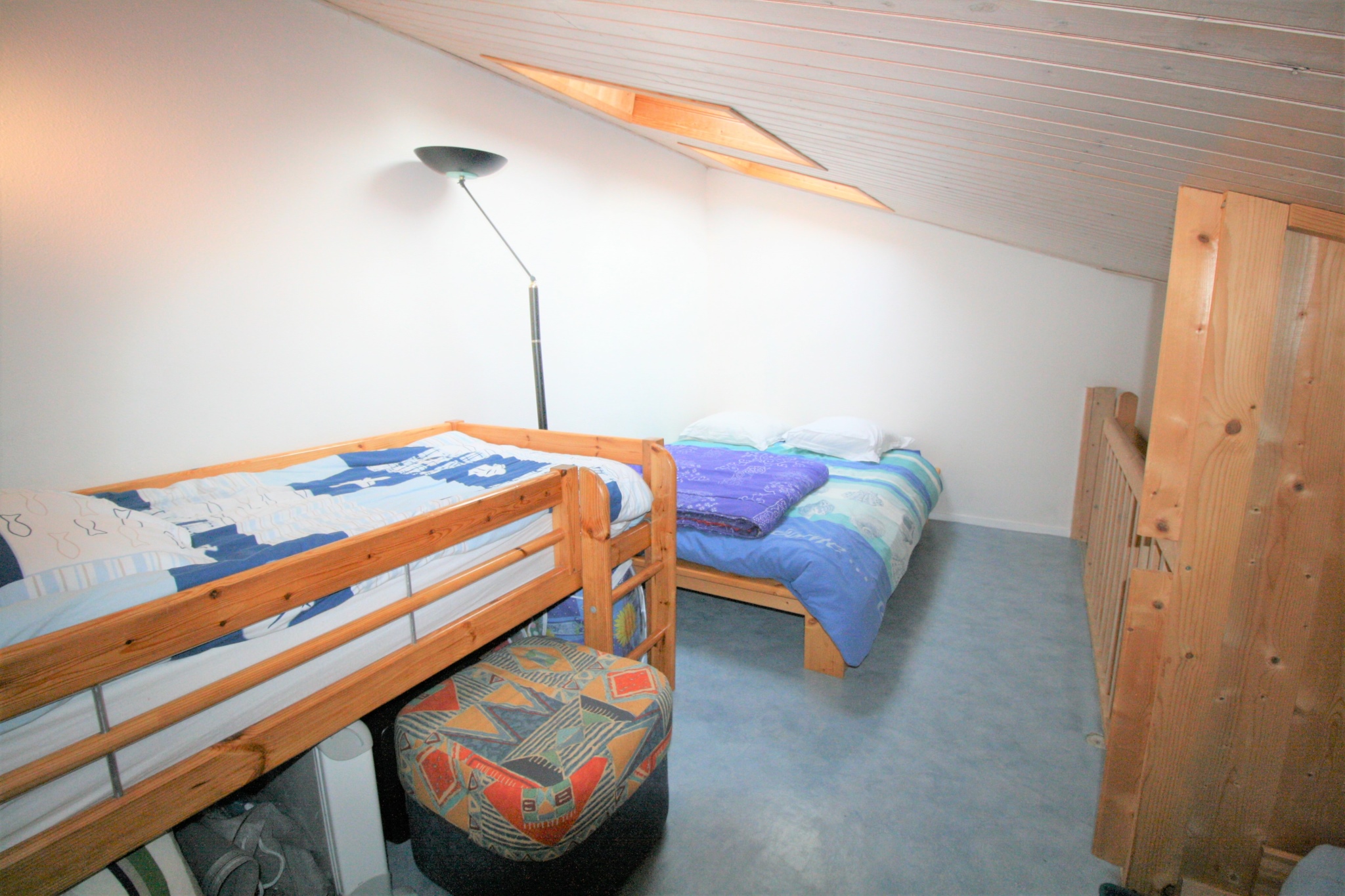 Jolie maison dans résidence de vacances avec piscine (ouverte juillet et août) avec un emplacement voiture. L'intérieur est agréable et bien décoré. Le séjour s'ouvre sur la terrasse avec salon de jardin - coin cuisine, salle d'eau (douche, lavabo), wc. A l'étage : 1 mezzanine (hauteur inférieure 1.80) avec vélux : 1 lit 140 , 2 lits superposés pour 1personne, 1 lit 90.