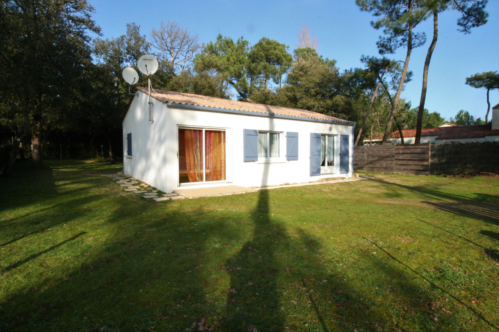 Villa indépendante avec beau jardin clos, dans un environnement boisé de pins.