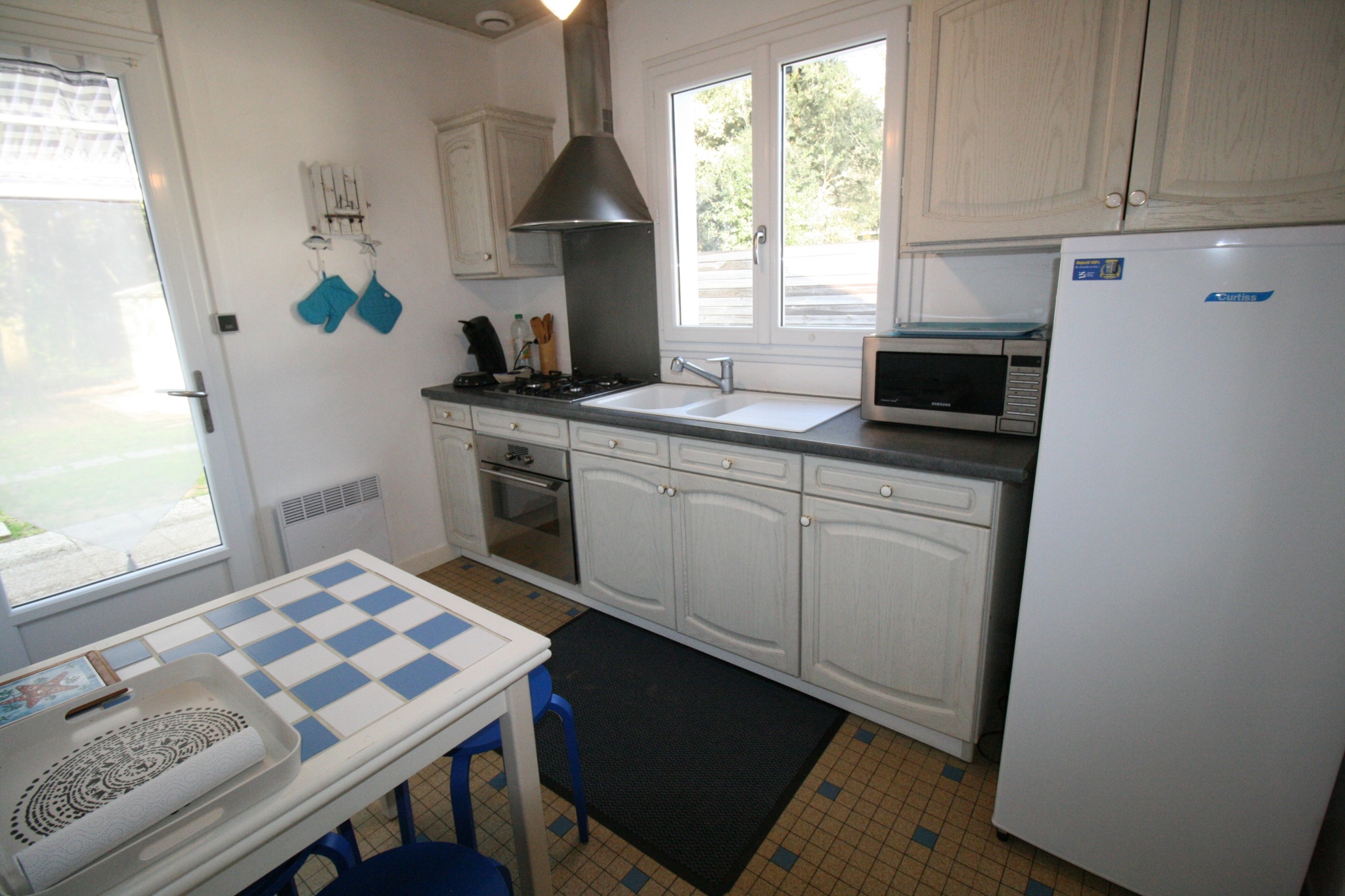 Equipements : Réfrigérateur, cuisinière, four, lave-linge. lave-vaisselle , cafetière électrique, batterie de cuisine, micro-ondes, congélateur, salon de jardin pour les repas à l'extérieur.