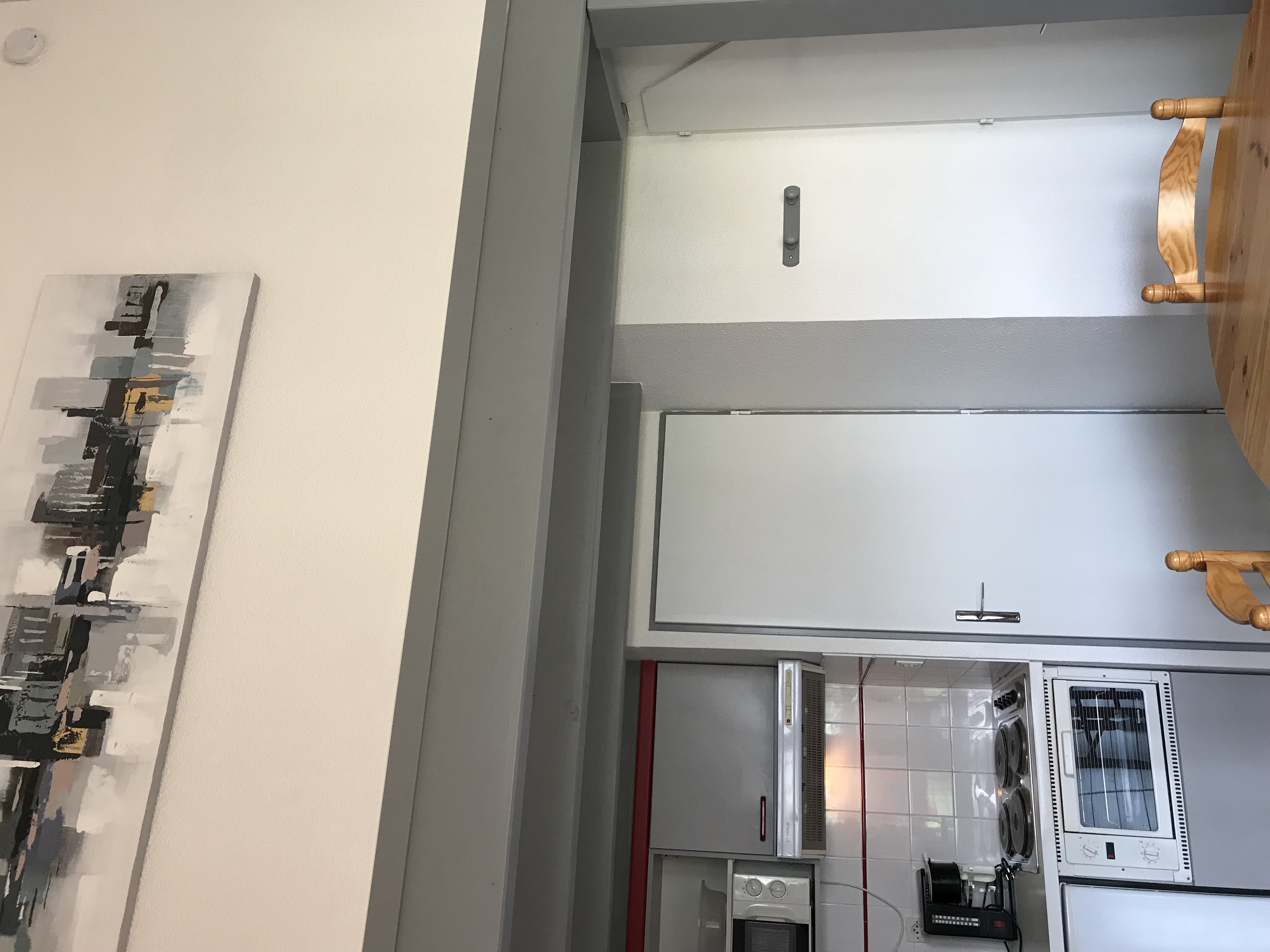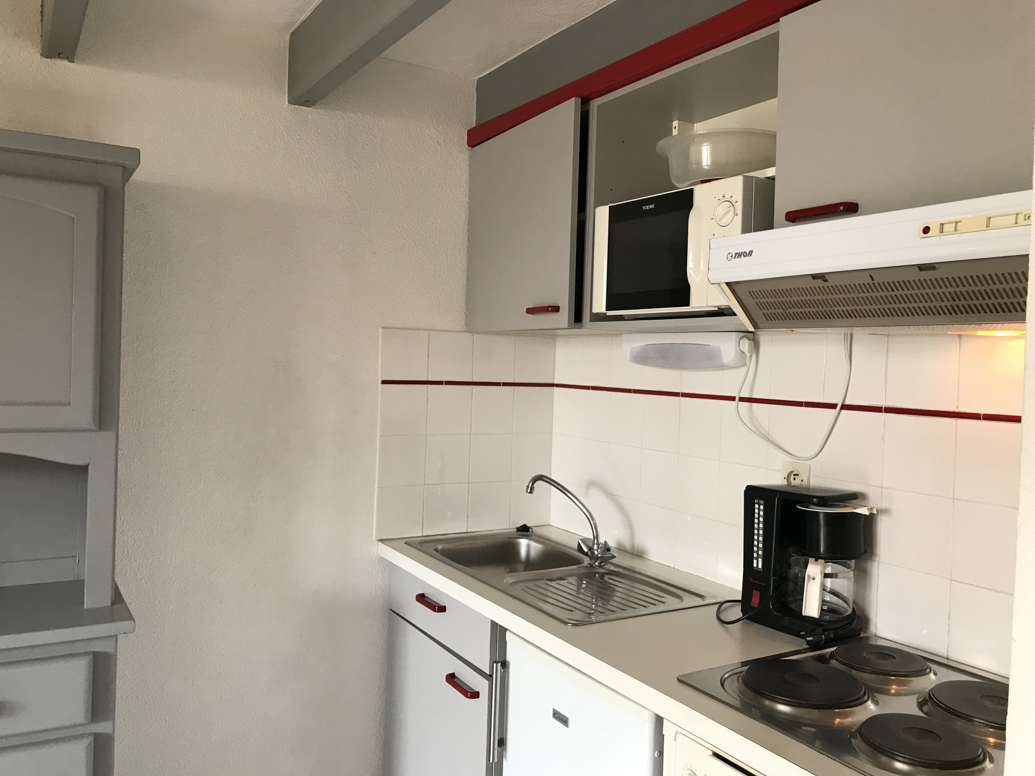 Rez de chausée : 1 entrée avec penderie, 1 pièce principale avec coin cuisine-salle à manger, 1 wc.