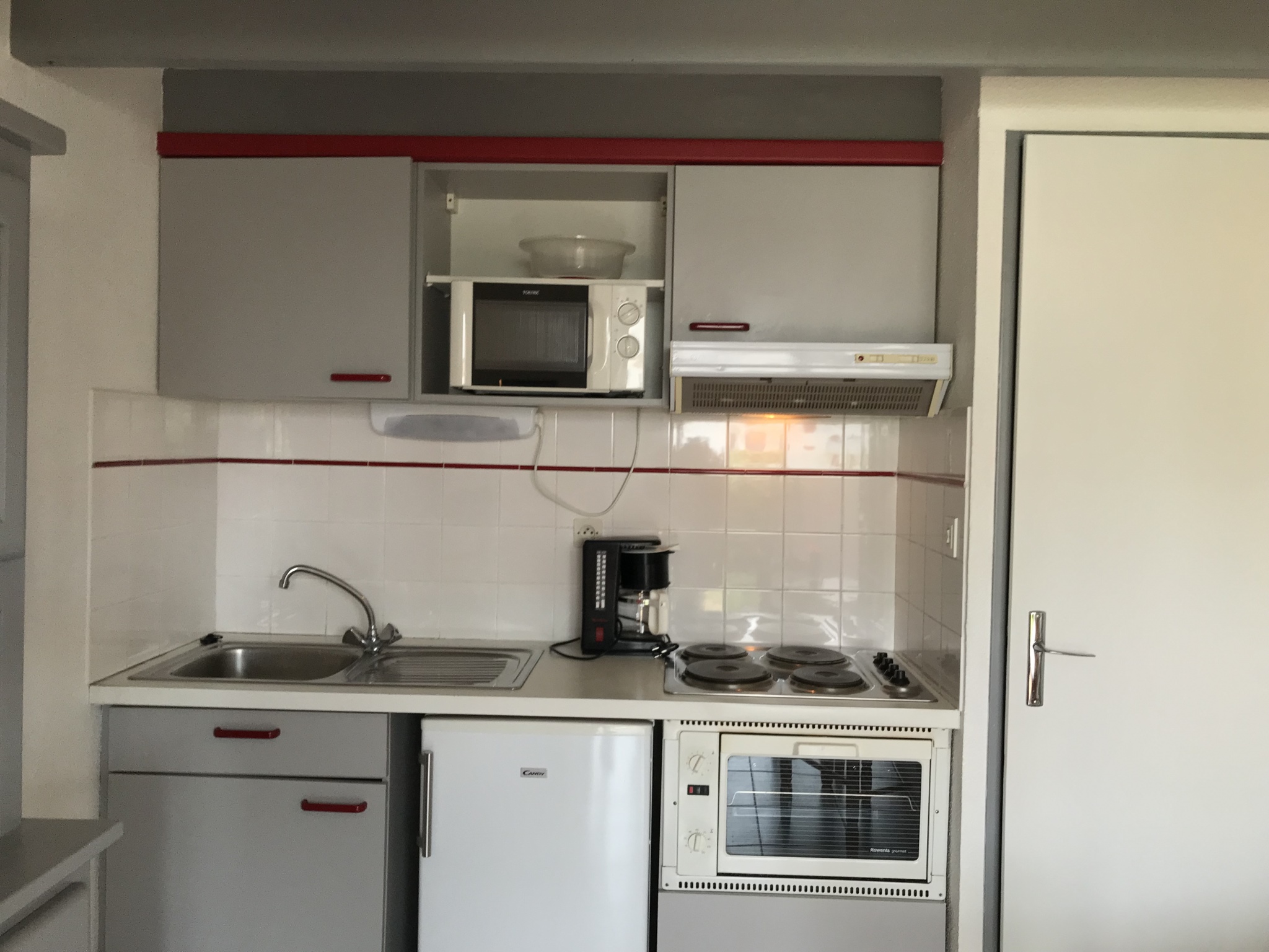 Equipements : 1 petit réfrigérateur, 1 four micro-ondes, 1 four ordinaire, 4 plaques électriques, 1 cafetière électrique, 1 aspirateur, 1 télévision, salon de jardin.1 lit parapluie.