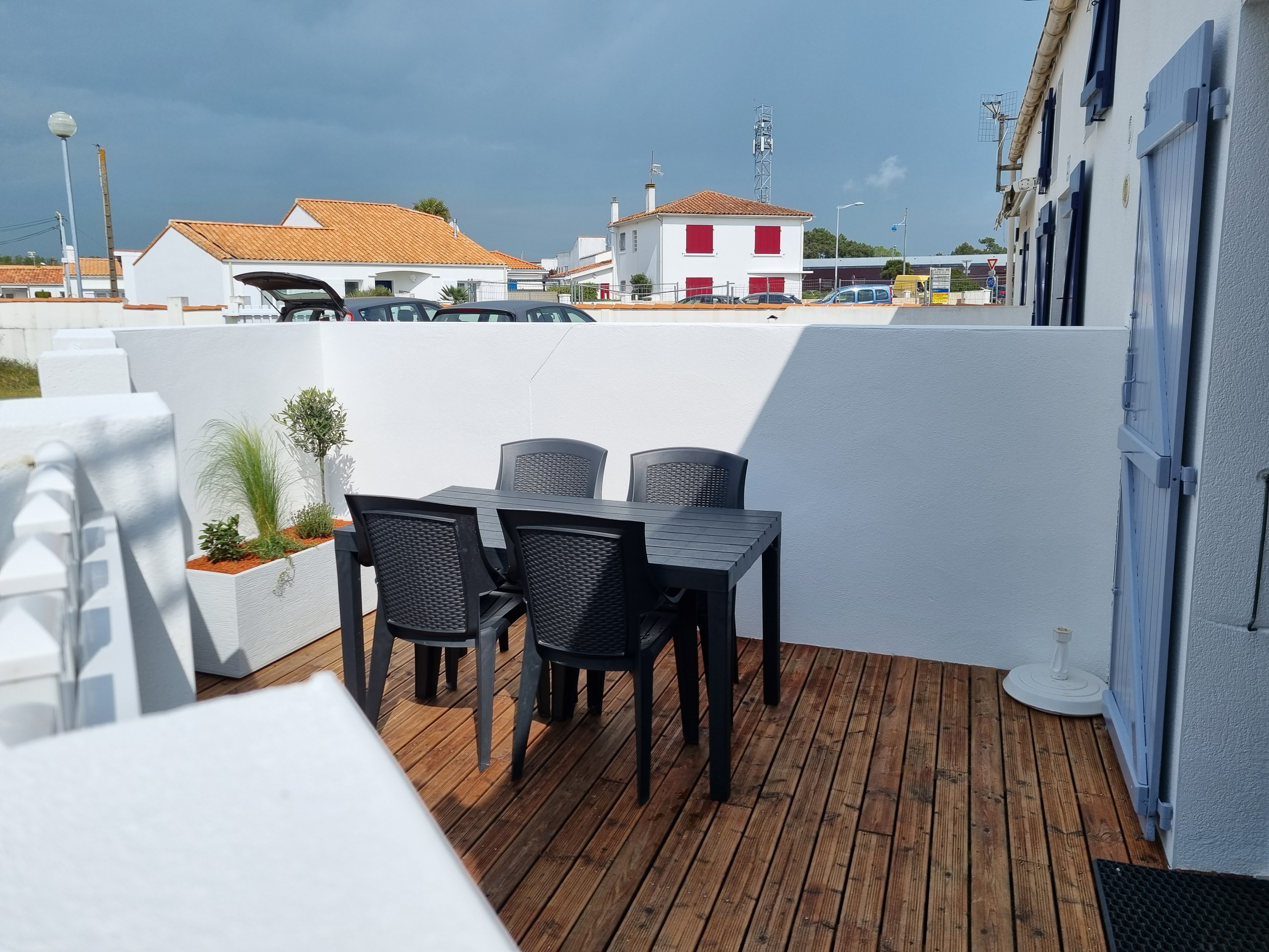 A l'extérieur terrasse privative, fermée avec salon de jardin.