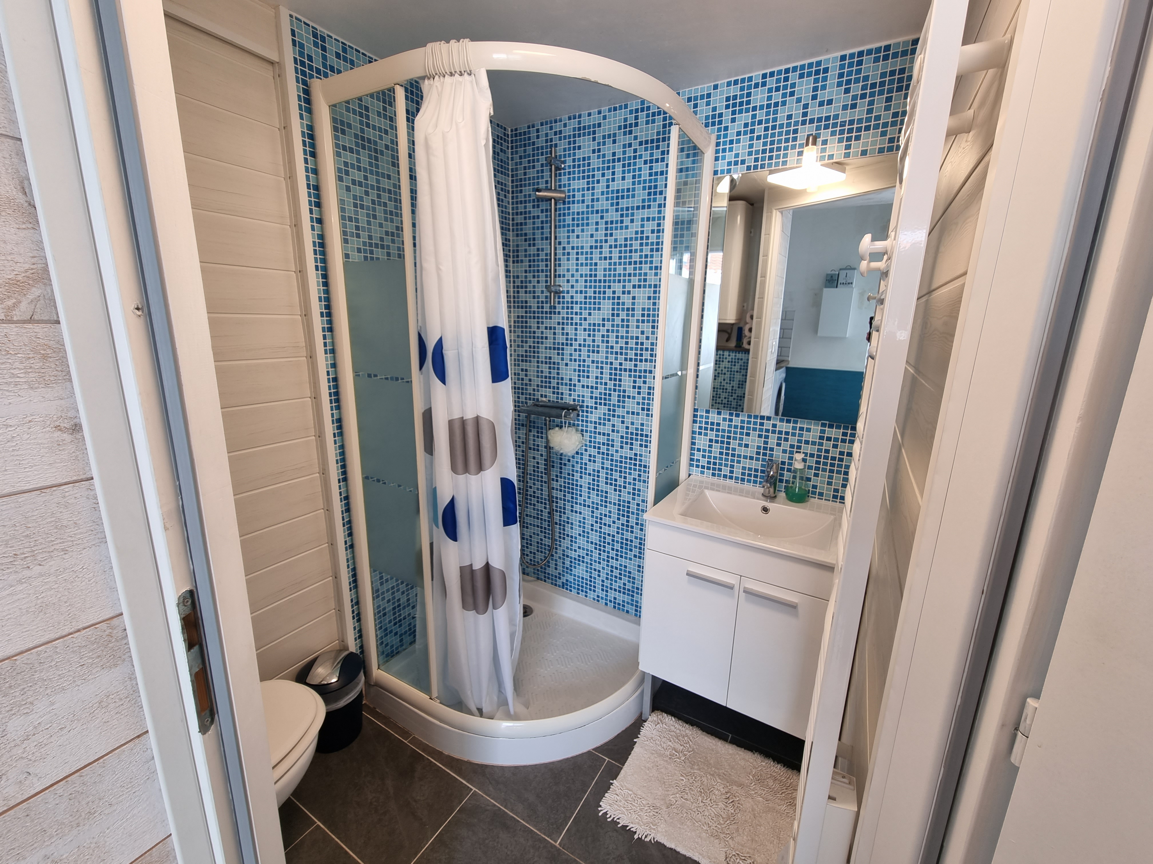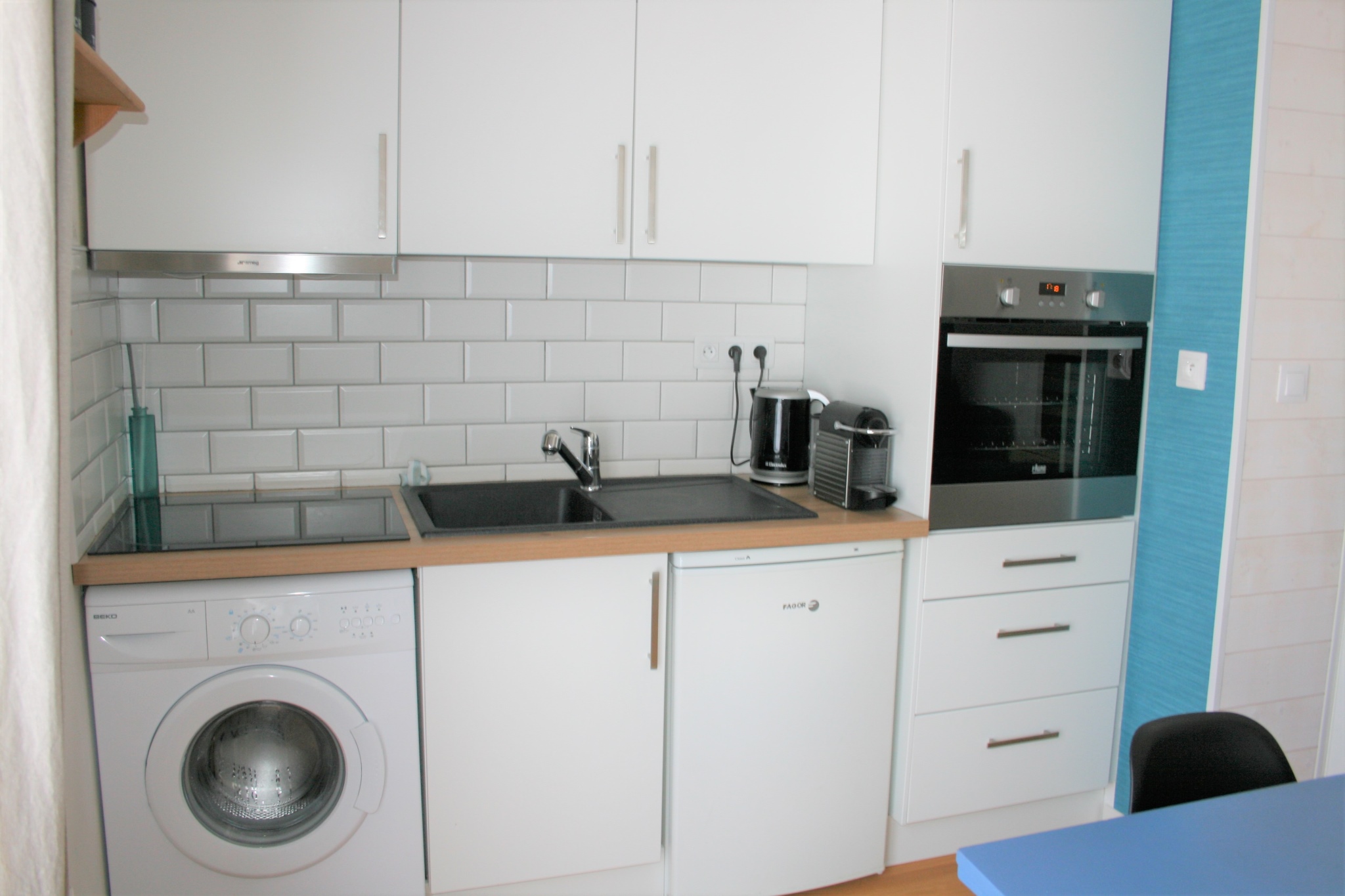 Equipements : réfrigérateur, plaque induction, four, micro-ondes, lave-linge, cafetière, bouilloire, barbecue, appareil à raclette, fer à repasser, télévision, aspirateur, vaisselle et couverts...