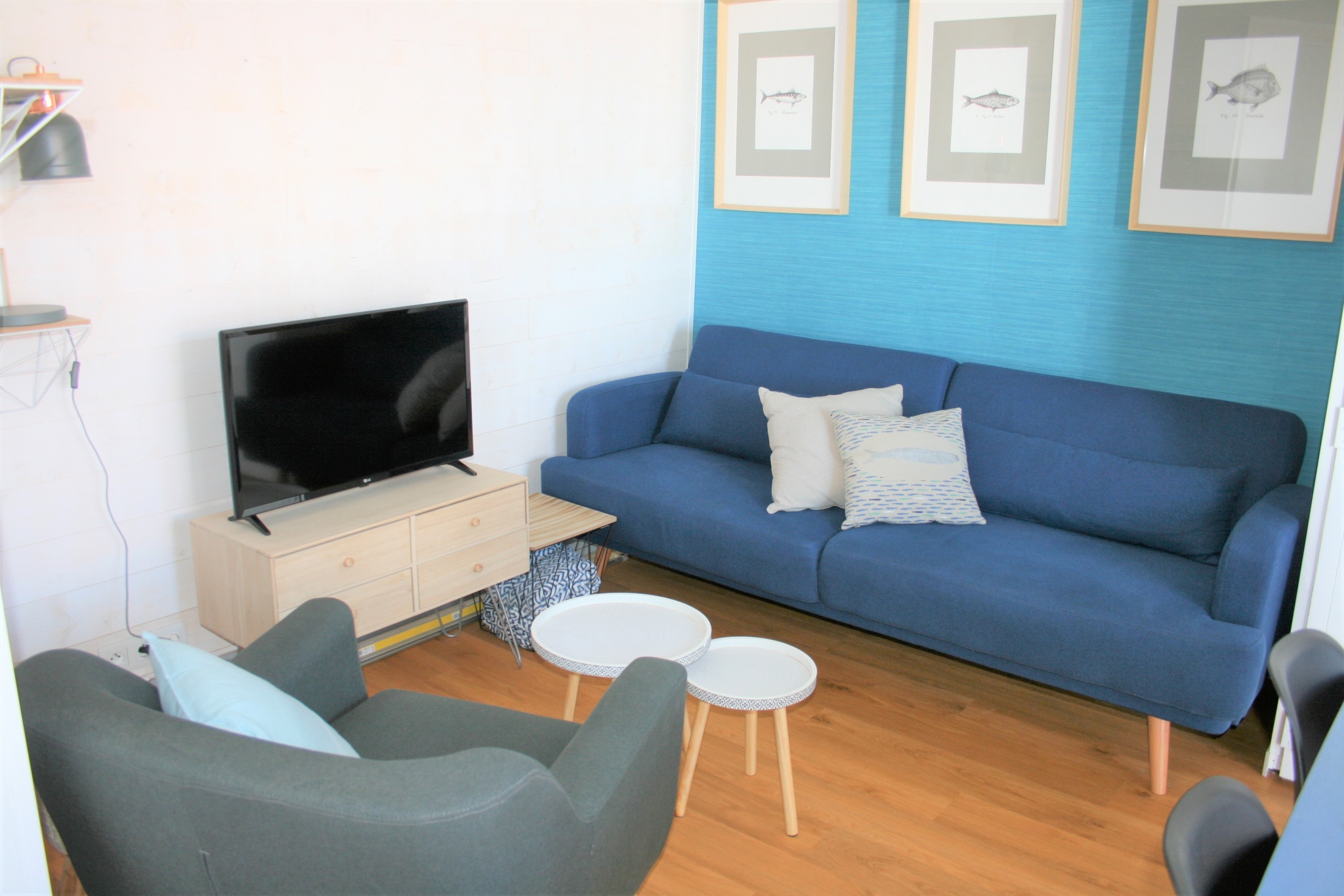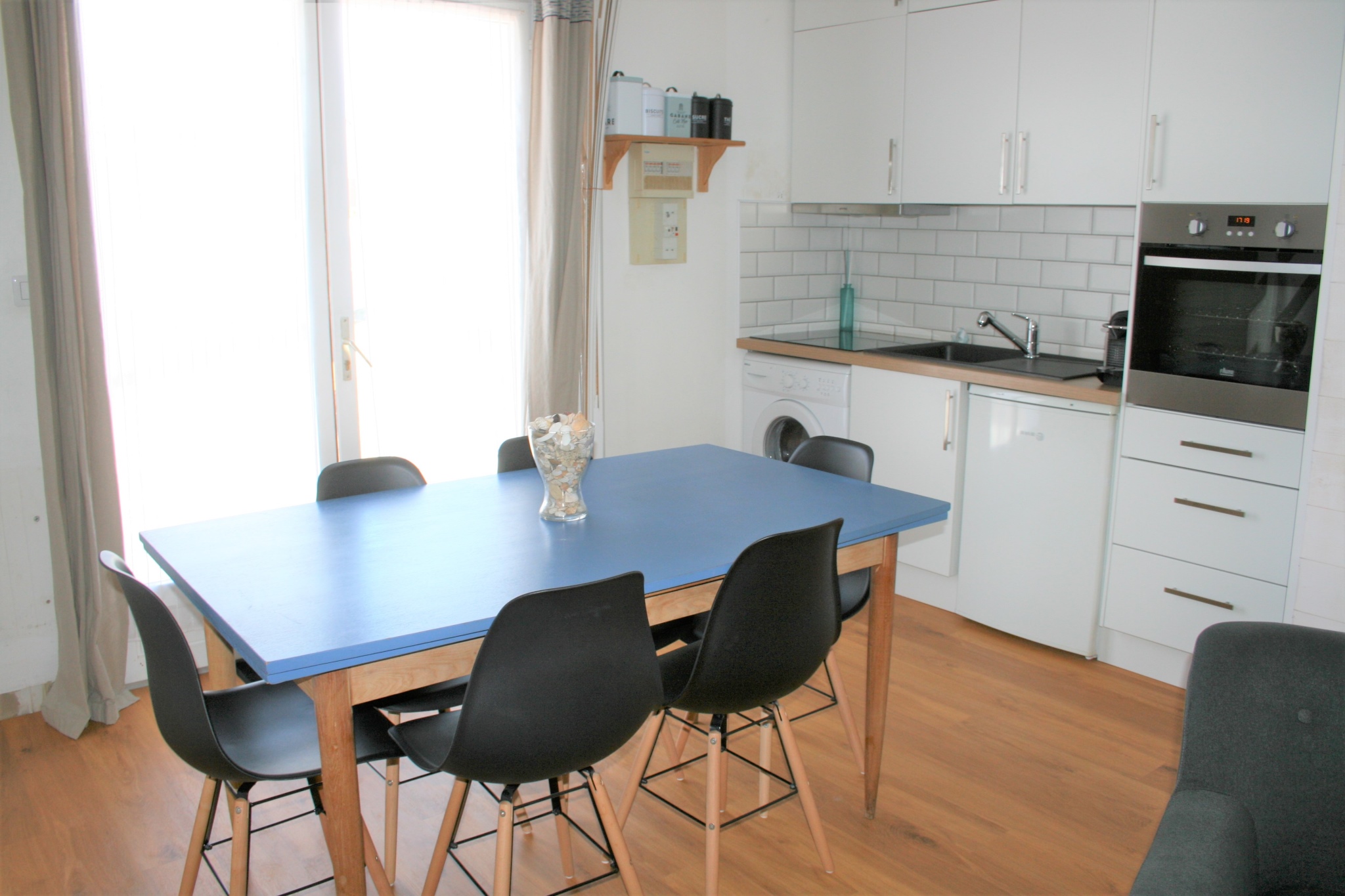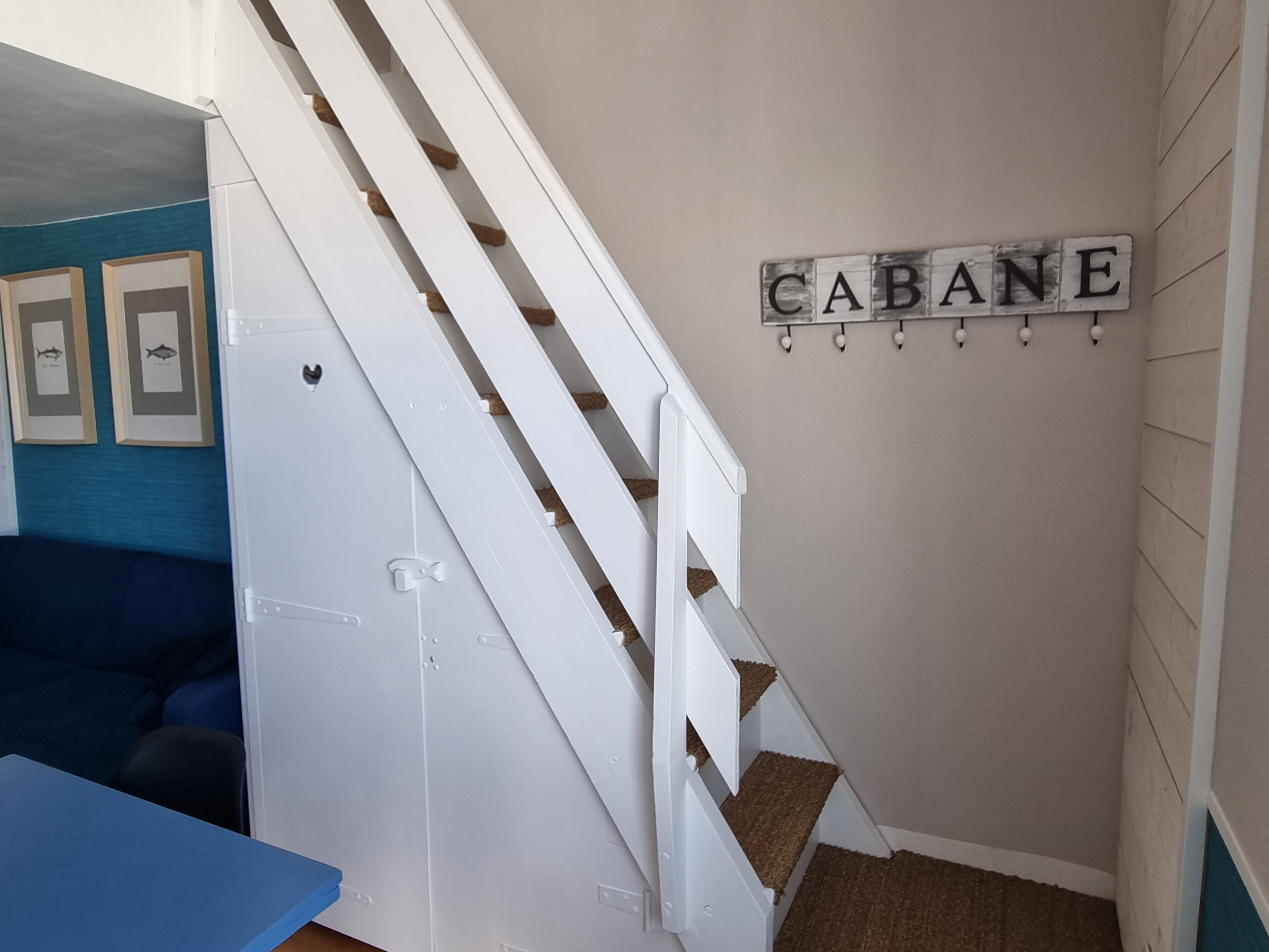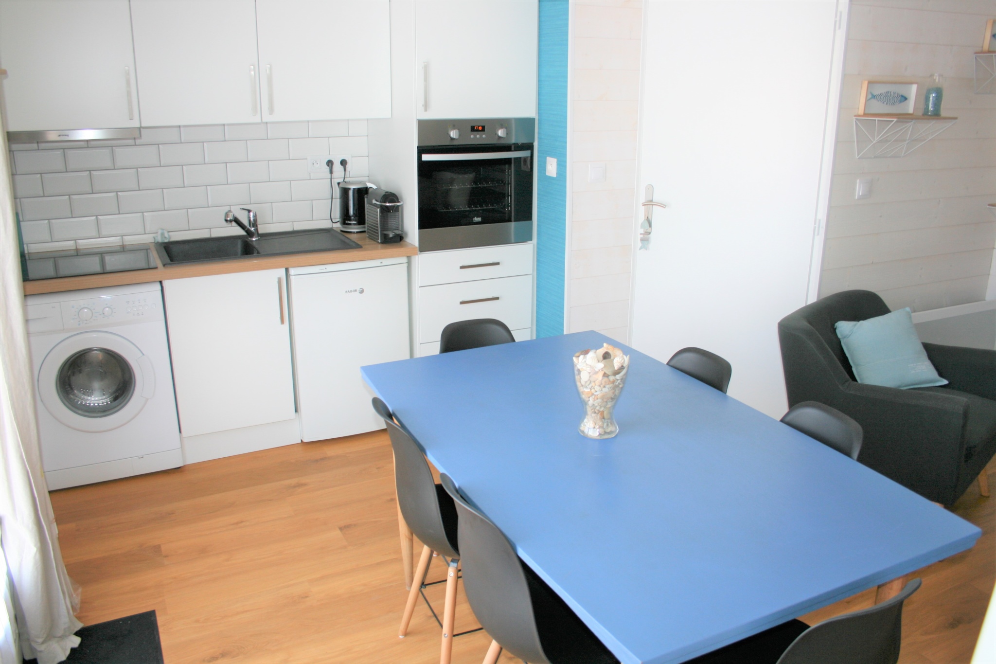 La Tranche sur Mer, à pied de la plage et des commerces du centre-ville. Dans petite résidence fermée avec un emplacement parking privé, jolie maisonnette d'environ 30m² mitoyenne entièrement rénovée avec goût comprenant une cuisine aménagée et équipée - un séjour avec espace repas et coin salon , canapé et TV. Une salle d'eau avec douche, lavabo et WC. Un escalier raide (ne convenant pas aux enfants en bas âge) menant à la mezzanine avec deux espaces nuit en enfilade : 1ere partie, 2 lits superposés de 80cm. 2eme partie, 1 lit 2 pers de 140cm.