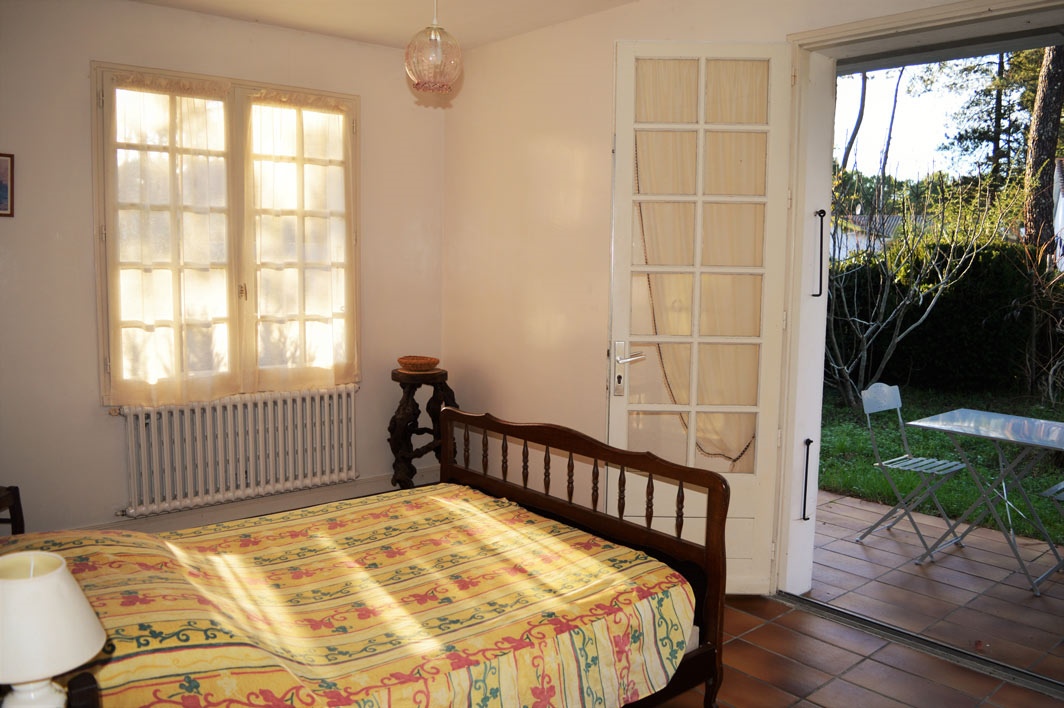 Situation : maison de plain-pied (1960 env.) entouré d'un jardin clos arboré (700 m²), à 400 m de plage de la Grière et 5 min. en voiture des commerces du quartier de la Grière.