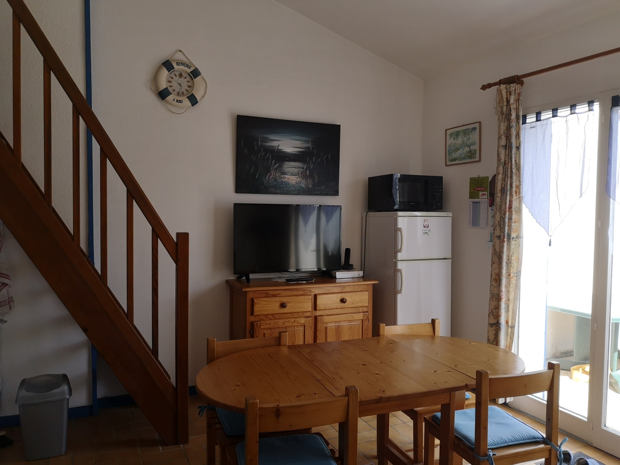 LA TRANCHE SUR MER, proche centre ville, maison dans résidence de vacances profitant de la proximité de la plage et des commerces. Parking voiture. Intérieur soigné et agréable avec le séjour-cuisine s'ouvrant sur le jardin, salle d'eau avec baignoire, lavabo, wc. Etage, 1 chambre avec 1 lit 140. A l'étage ( escalier raide ) une mezzanine ( hauteur inférieure à 1 m 80 )