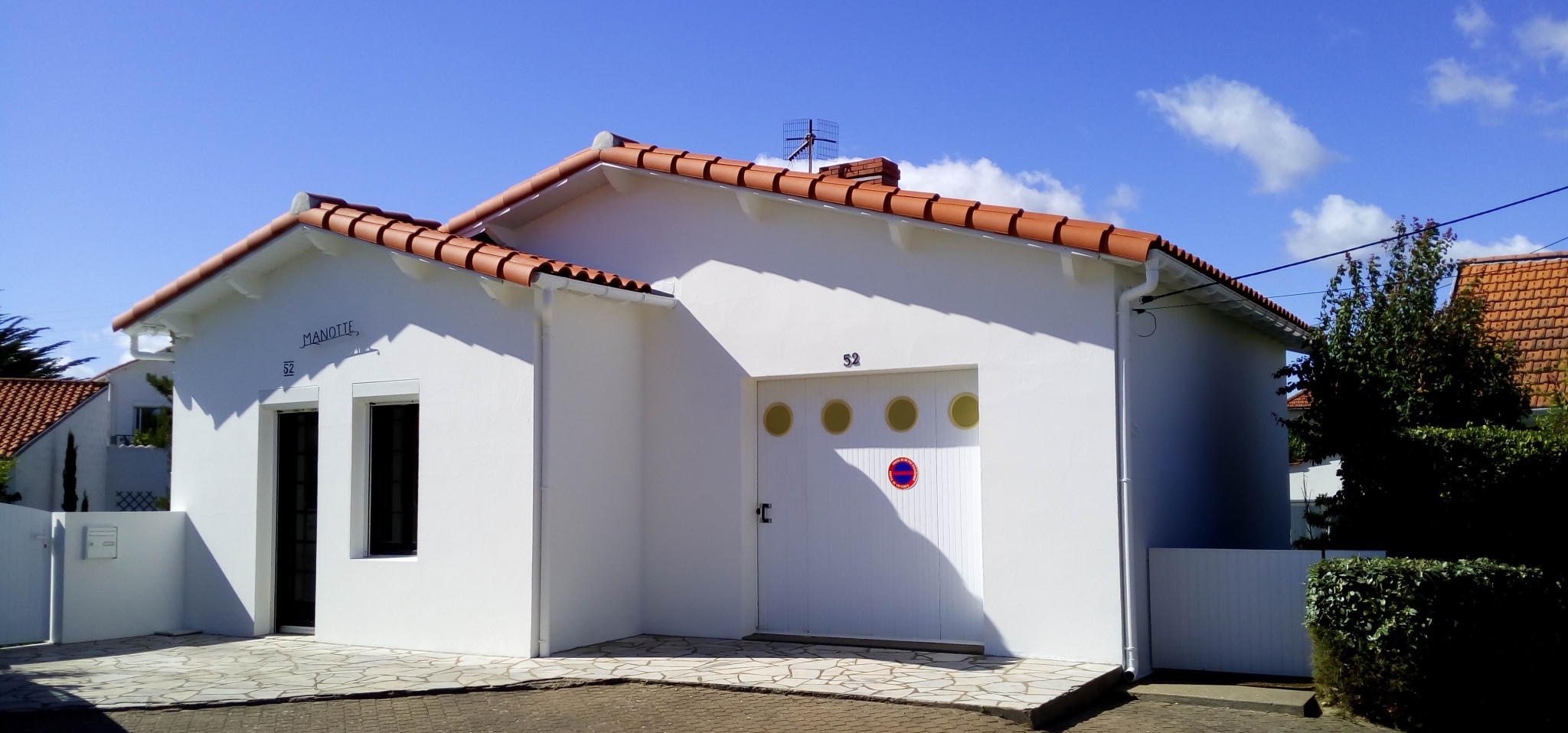 Maison pour vacances en famille, à quelques minutes à pied de la plage et des commerces. 1 cour pour les repas extérieurs et 1 emplacement voiture. - En rez-de-jardin (donnant sur cour) : 1 cuisine, 1 salle à manger (avec cheminée uniquement décorative), 1 salon, 1 chambre avec 1 lit 140, 1 salle de bains et 1 WC, - en rez-de-rue : 3 chambres avec chacune 1 lit 140 (dont 1 donnant directement sur la rue et ne convenant pas aux enfants en bas-âge), 1 salle de bains, 1 WC et 1 garage. Plusieurs niveaux avec marches.