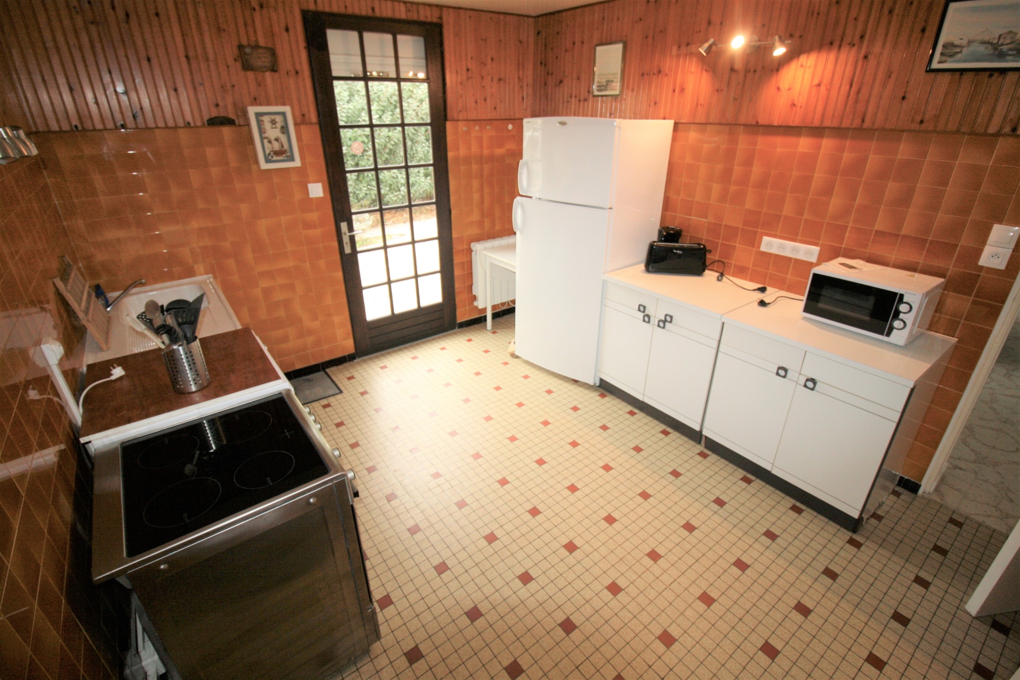 Équipements : 1 cuisinière, plaque induction,1 micro-ondes, 1 réfrigérateur avec partie congélateur, 1 cafetière électrique, 1 bouilloire, 2 aspirateurs, 1 salon de jardin et 1 barbecue, télévision, lave vaisselle et lave linge. vaisselle et couverts.