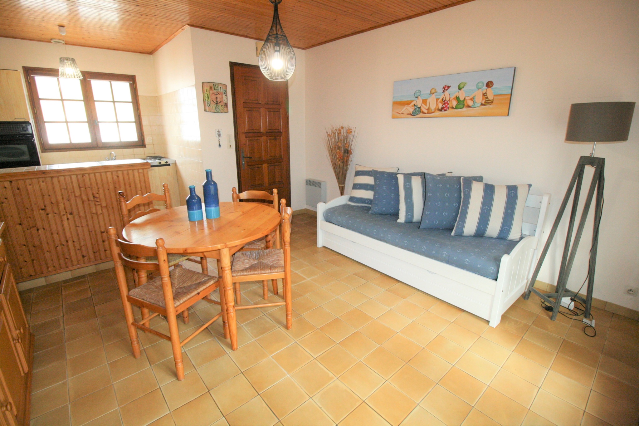 Equipements : Réfrigérateur, four, plaques gaz, lave-linge, lave-vaisselle, canapé-lit, batterie de cuisine, terrasse avec salon de jardin,