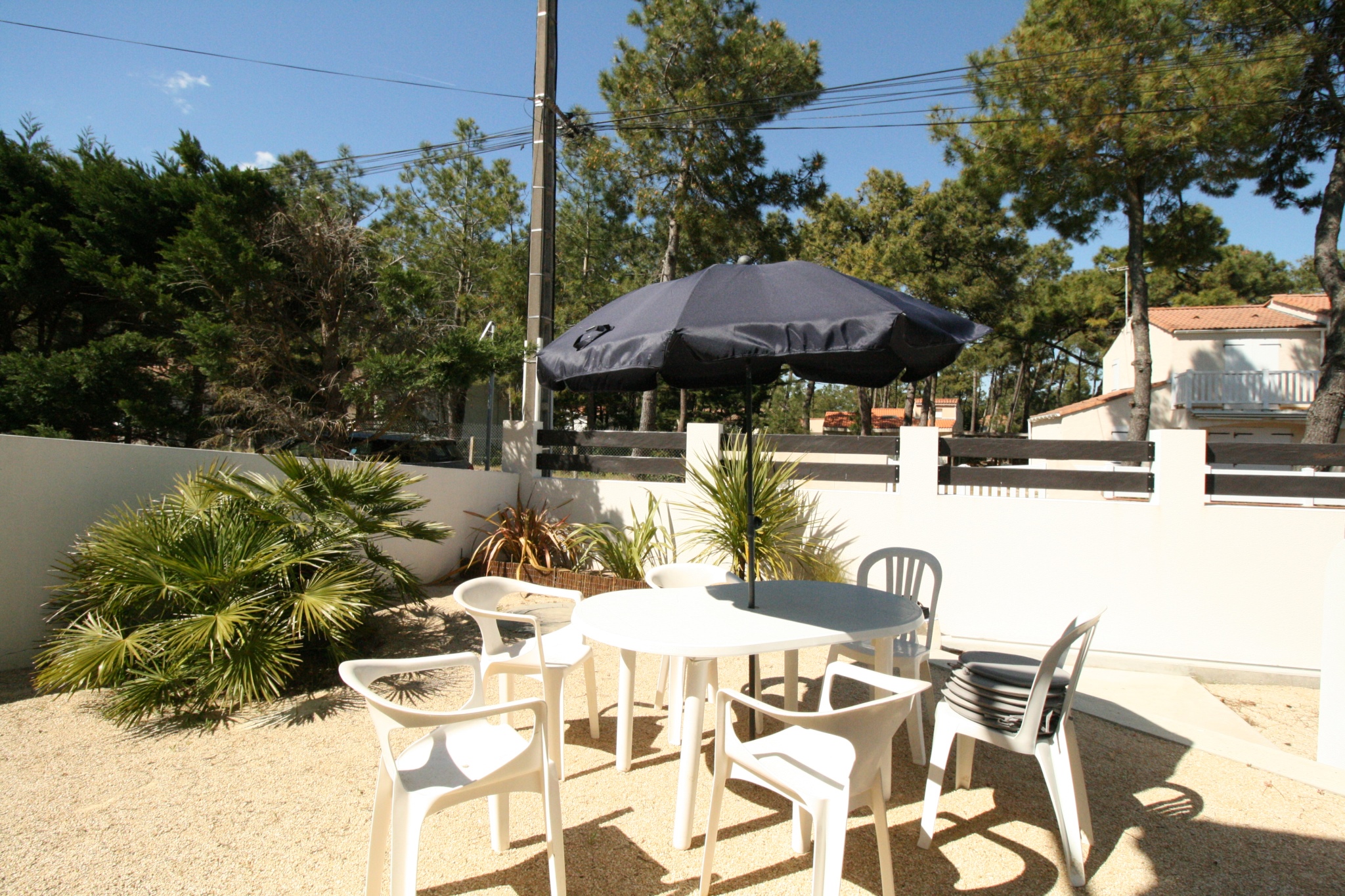 LA TRANCHE SUR MER, La Grière, un appartement au rez de chaussée d'une villa coté rue. L'appartement profite d'une terrasse privative bien agencée et entretenue, avec salon de jardin et transats. Une pièce principale avec coin cuisine et salon, 1 chambre avec 2 lits de 0.90 et 1 chambre avec 1 lit 180 cm. (oreillers grande taille). 1 salle d'eau avec douche, lavabo. 1 wc. Un emplacement voiture privatif devant le garage.