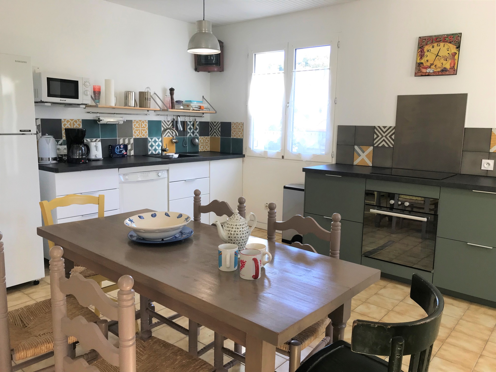 Equipements : plaque de cuisson induction, four électrique, micro ondes, réfrigérateur-congélateur, lave vaisselle, lave linge, bouilloire, 1 télévision, 1 aspirateur, ustensiles de vaisselle et couverts...1 cheminée pour décoration, wifi débit faible.