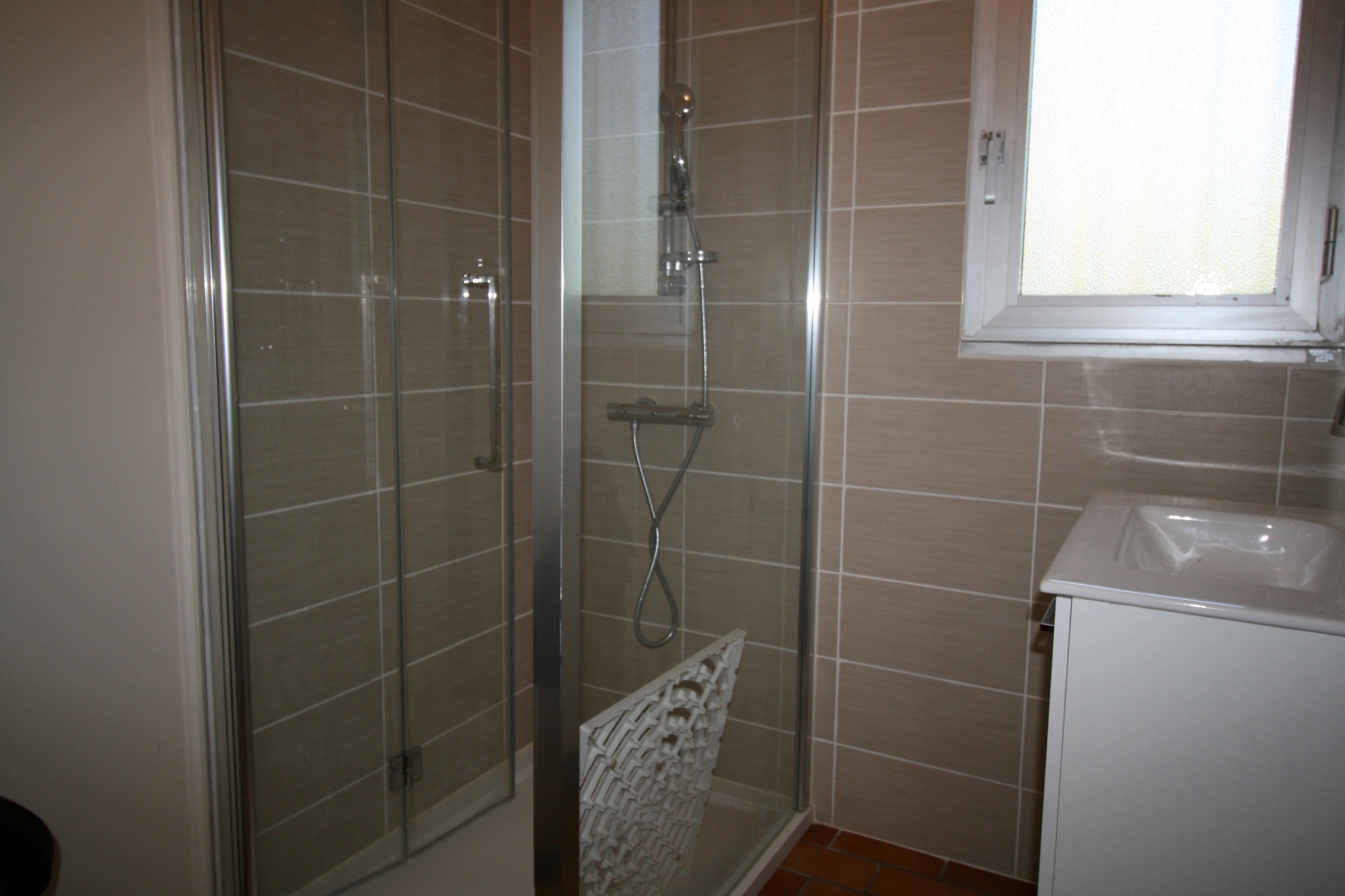rez de chaussée : 1 salle à manger - salon, 1 cuisine donnant sur terrasse pour les repas sous préau et store banne. 1 salle d'eau (douche, lavabo) 1 wc séparé.