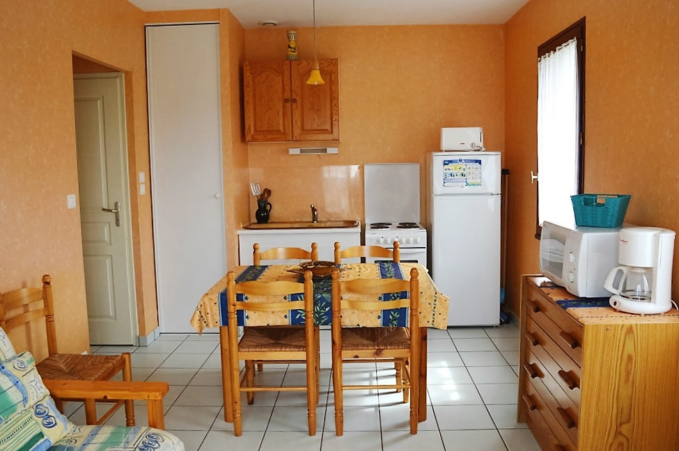 -> et 1 coin cuisine (réfrigérateur, cuisinières avec 4 plaques électriques, 1 four, 1 micro-ondes).
