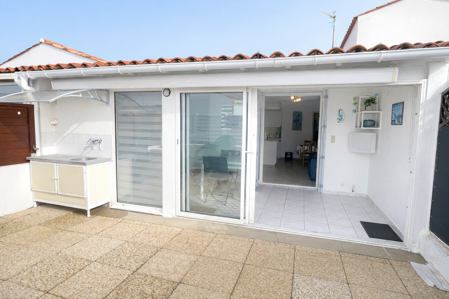 Vous profiterez d’une terrasse avec store banne, d’une cour fermée (pratique et sécurisante) aménagée avec mobilier de jardin, d’un barbecue en dur et d'un évier extérieur avec eau chaude/eau froide pour vos repas en extérieur. Un emplacement de parking privé dans la résidence