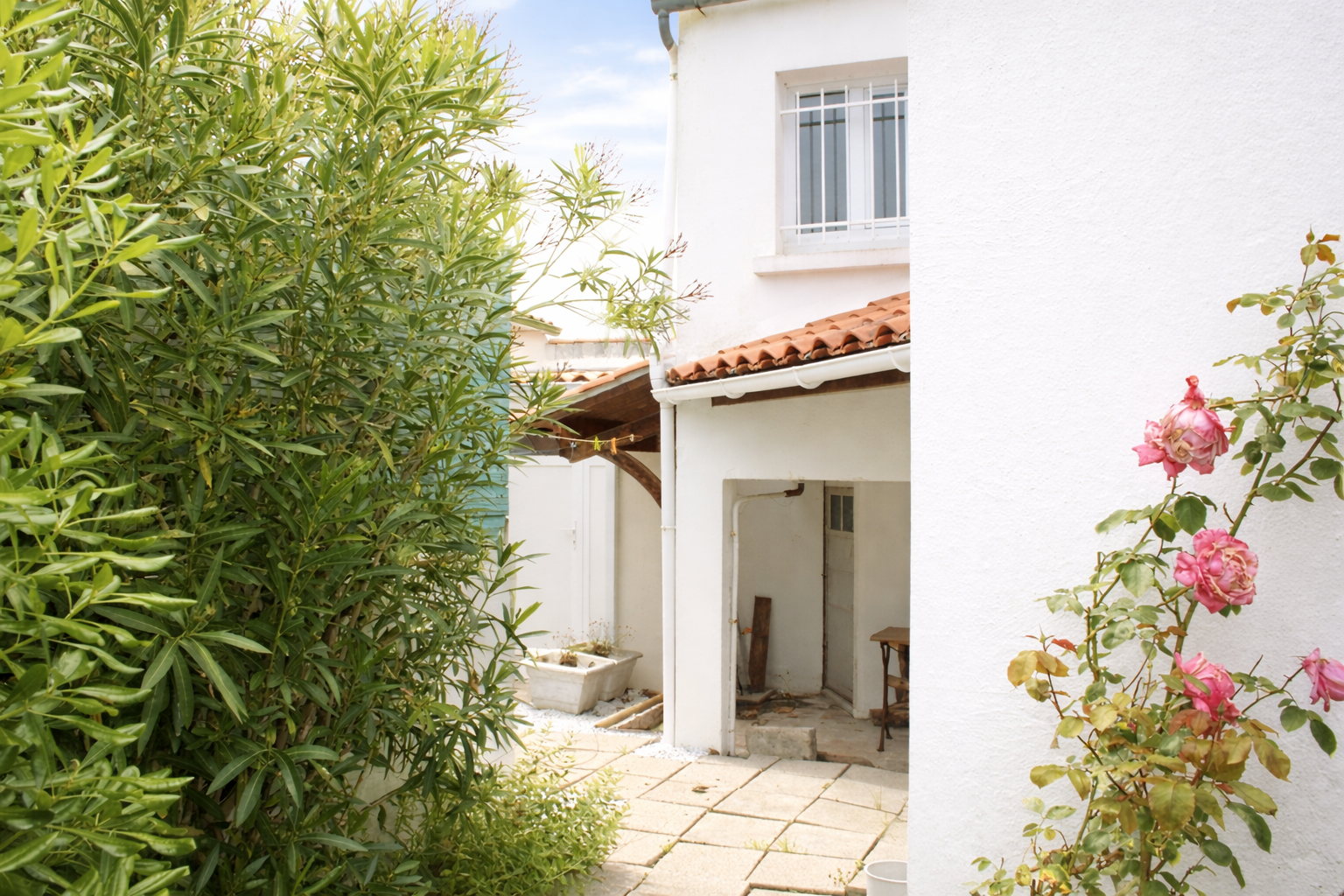Maison - au cœur du village, proche plage et commerces. Un emplacement voiture. Terrasse intérieure pour prendre les repas. la maison est agréable, aménagée avec goût.