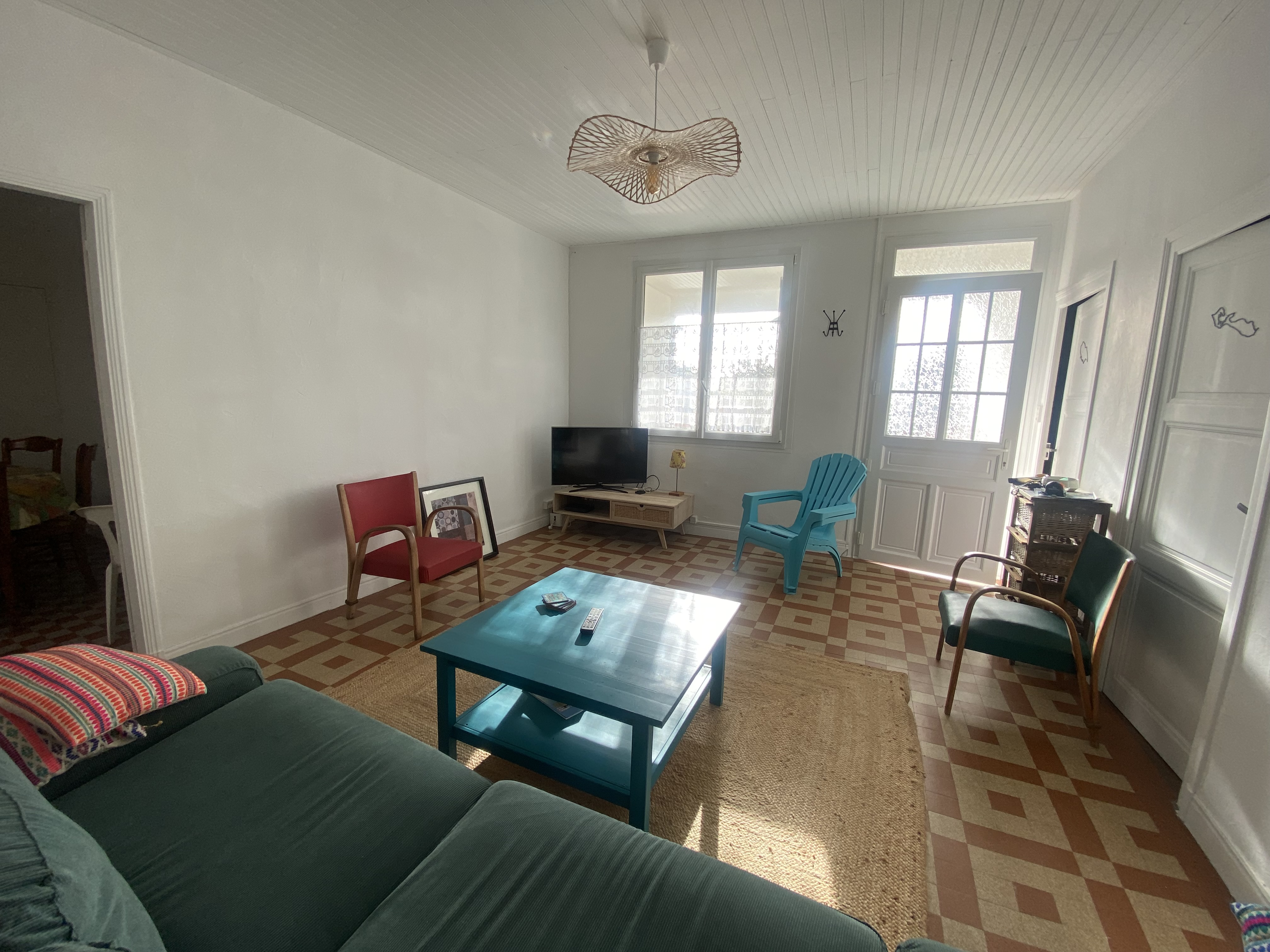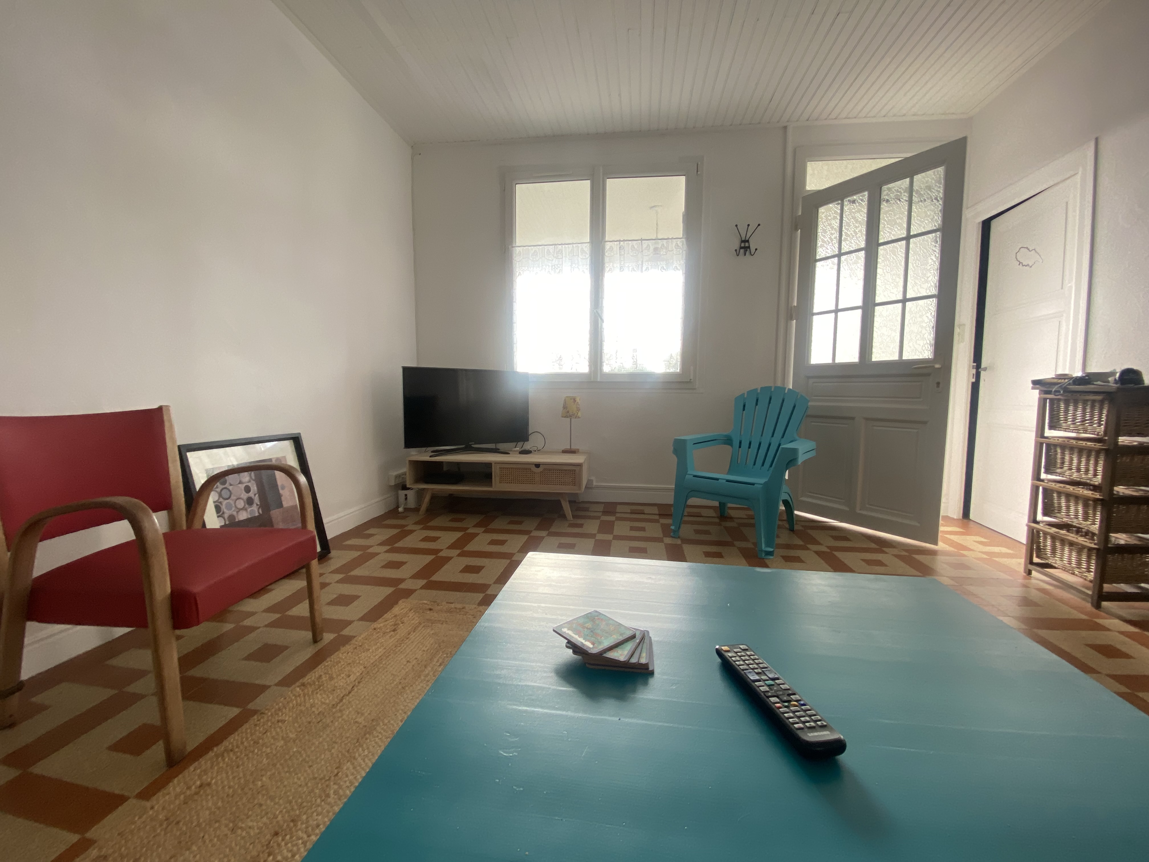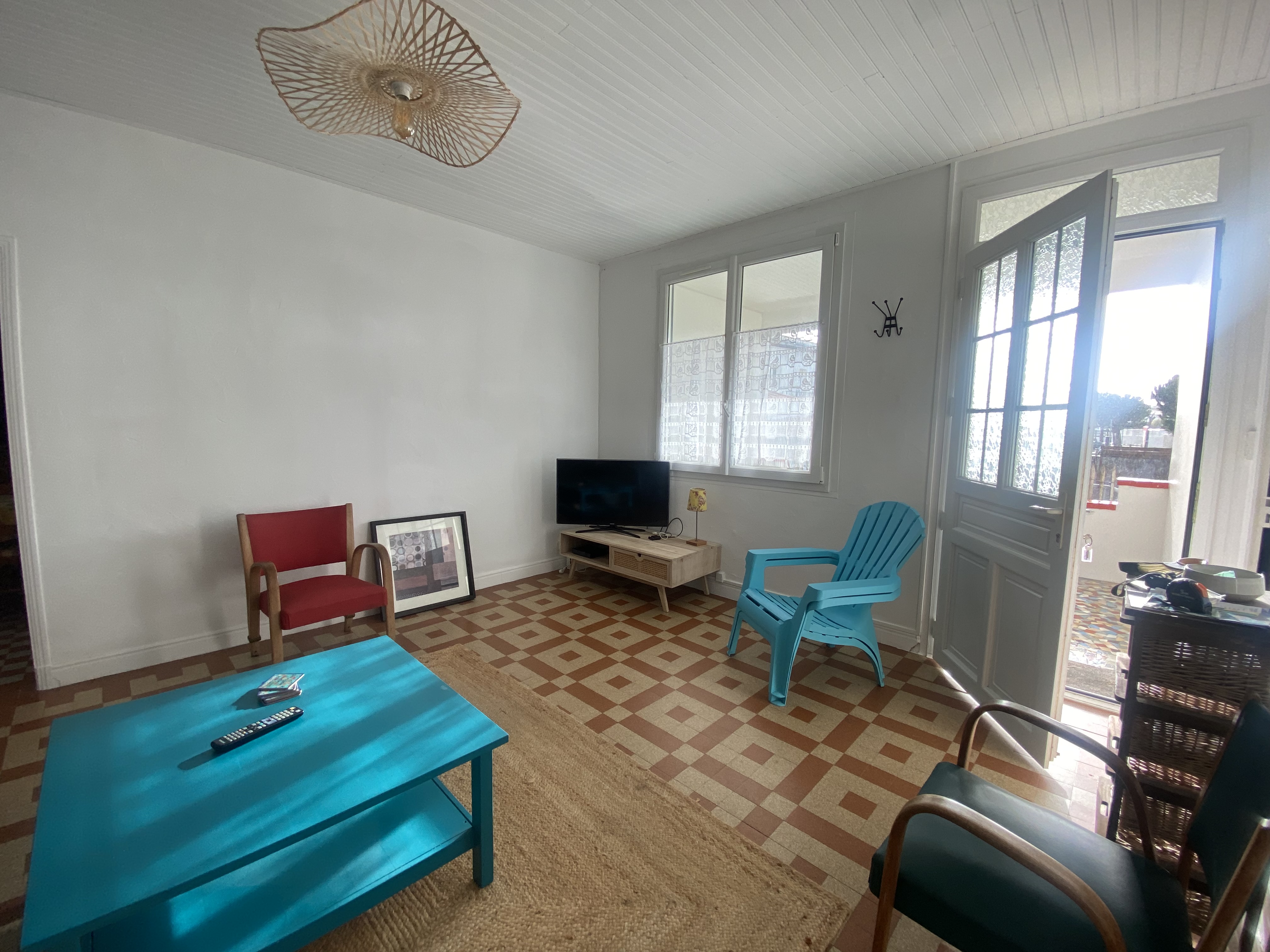 EQUIPEMENTS : télévision, wifi, lave-vaisselle, lave-linge, plaque vitro, micro-ondes, cafetière électrique, aspirateur, four, réfrigérateur-congélateur, salon de jardin.