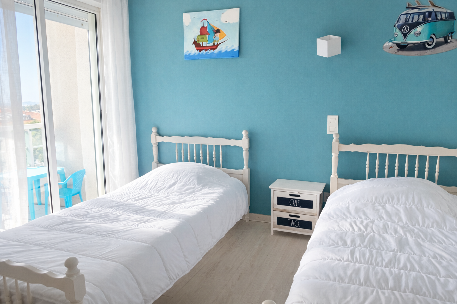 3 chambres, une avec un lit de 160cm et 2 avec 2 lits 90cm. 1 salle de bain (lavabo et combiné baignoire-douche) et 1 WC séparé. accès WIFI gratuit.