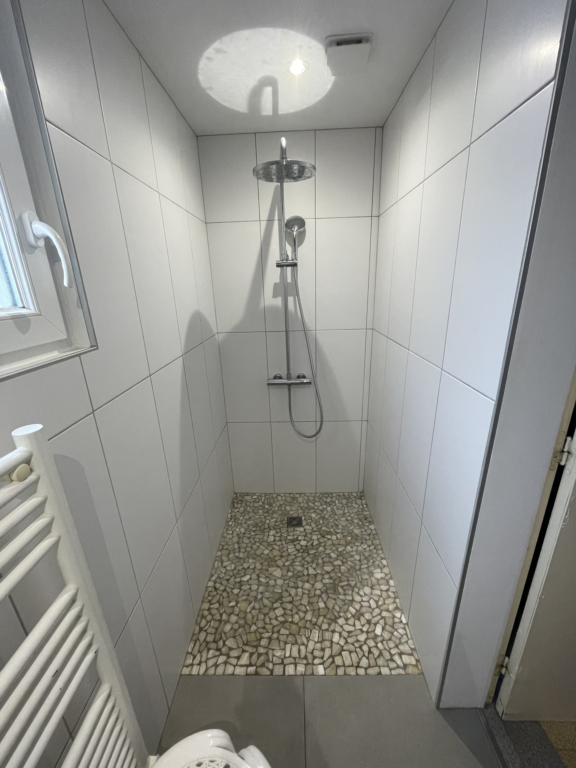 L'appartement pour 2/4 personnes comprend une cuisine dinatoire équipée, une grande chambre avec 2 lits de 140cm, une salle d'eau neuve avec douche à l'italienne, vasque et wc. Plusieurs machines à laver en commun avec les autres logements.