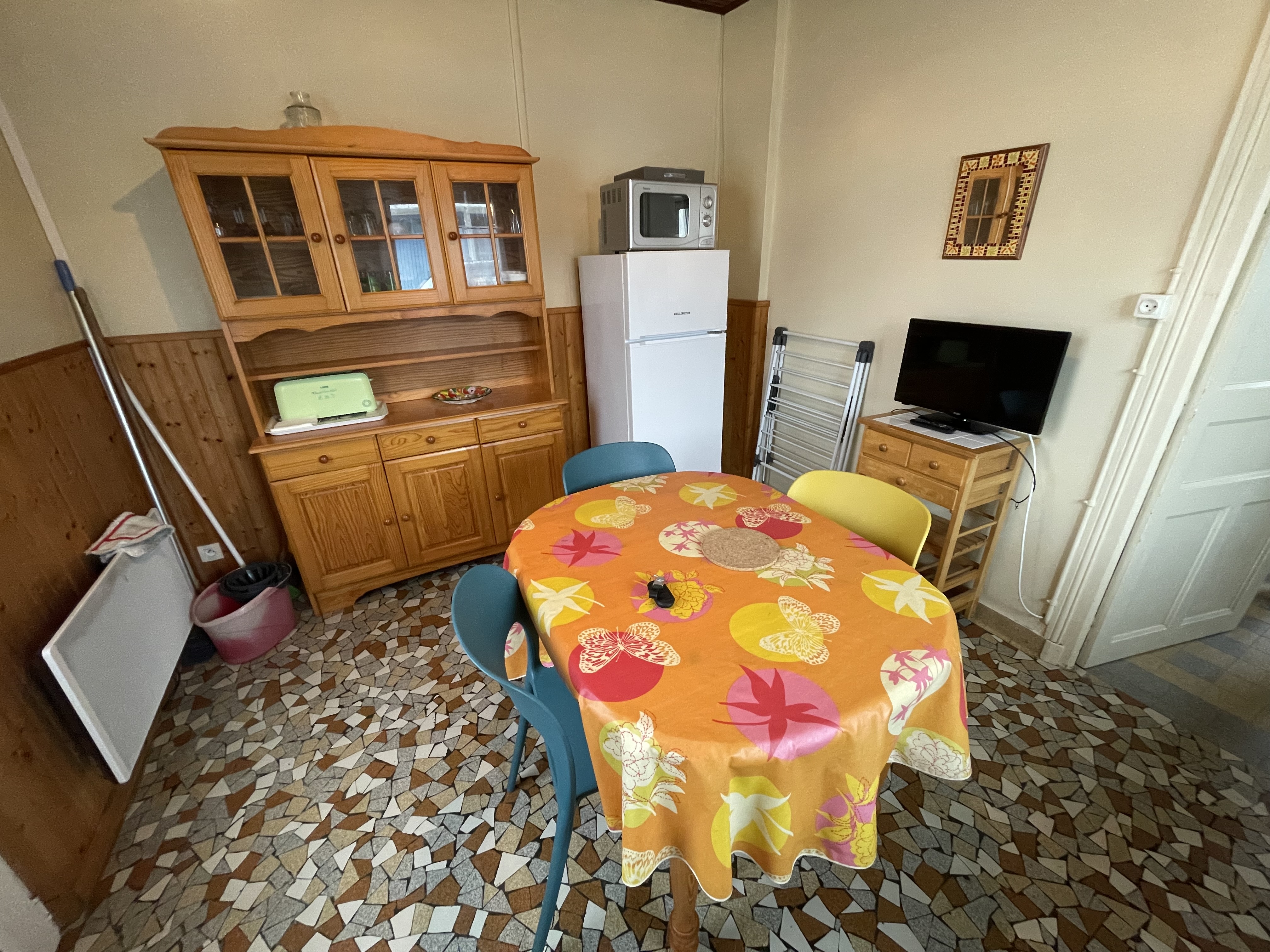 Equipements : télévision, réfrigérateur-congélateur, four, plaque induction, micro-ondes, cafetière, bouilloire, grille pain, mobilier de terrasse.