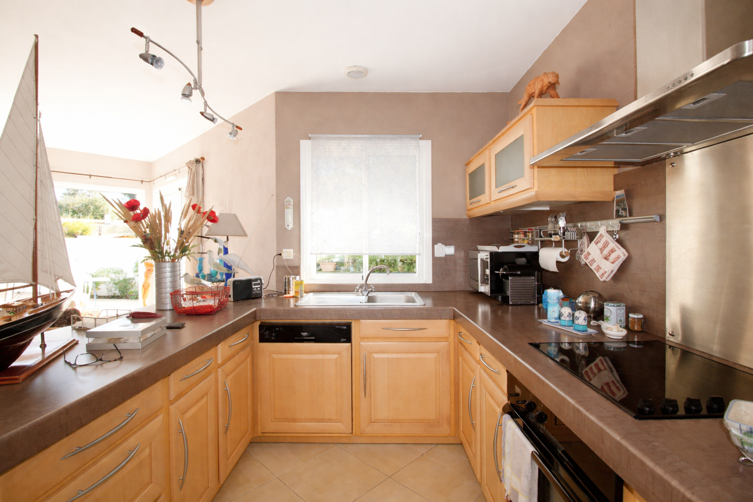 Equipements : 1 plaque vitro, hotte, micro ondes, réfrigérateur-congélateur, four électrique, lave vaisselle, lave linge, télévision,