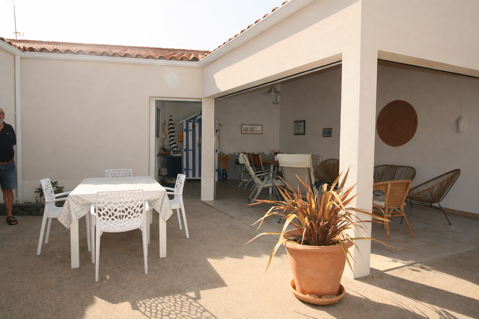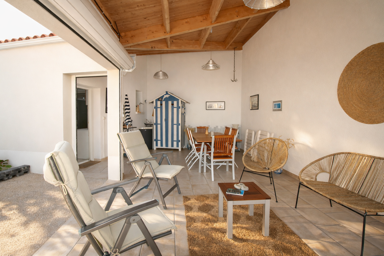 la Tranche sur Mer, Le Phare, très jolie maison avec son jardin individuel et fermé, emplacement voiture. Décoration recherchée et raffinée, Grand séjour avec sa cuisine , 3 chambres avec chacune 1 lit 140 cm. 2 salles d'eau, 2 wc.1 grand préau pour les repas et les soirées d'été.