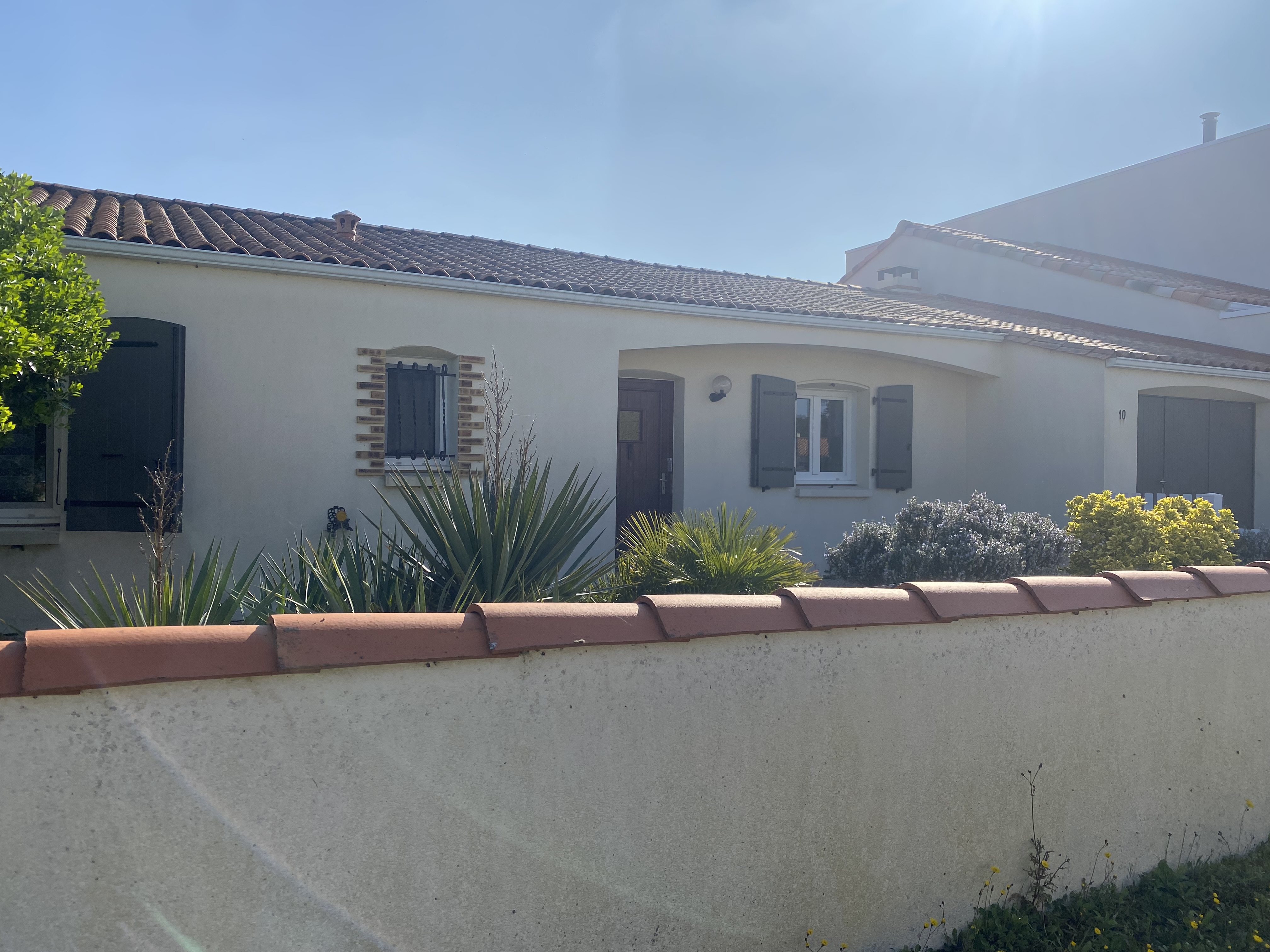 LA TRANCHE SUR MER, le Phare, maison (plain-pied), derrière la dune, construite sur un terrain laissé à l'état naturel (600 m² env.), située à quelques pas de l'accès de la plage des Grandes Loges (accès tranc 11 - 10 m env.), 1 500 m du centre-ville (env. 25 min. à pied).