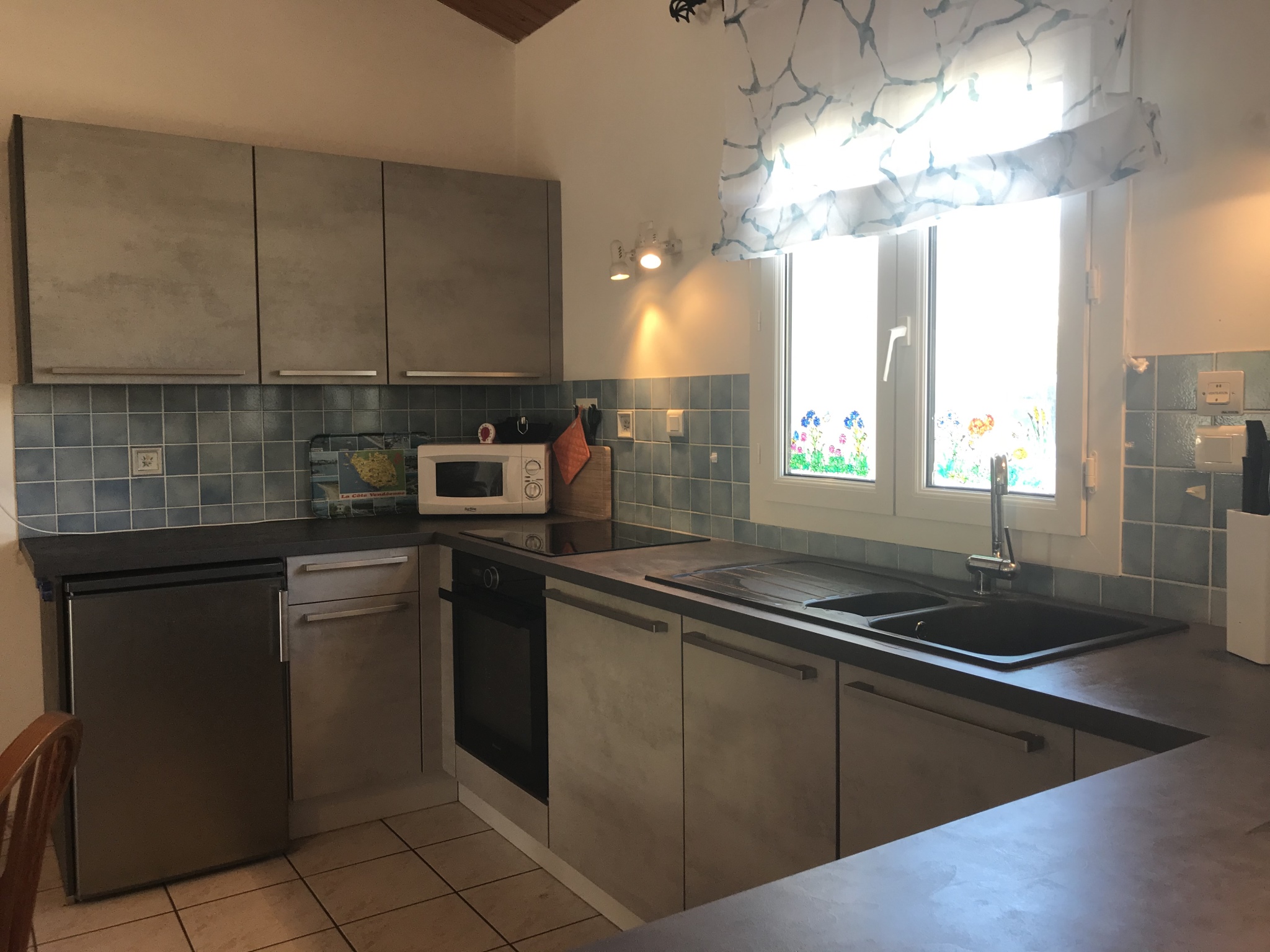 -> 1 coin cuisine ( plaque vitro céramique., four, micro-ondes, machine à café, petit réfrigérateur 1 porte, lave-vaisselle),