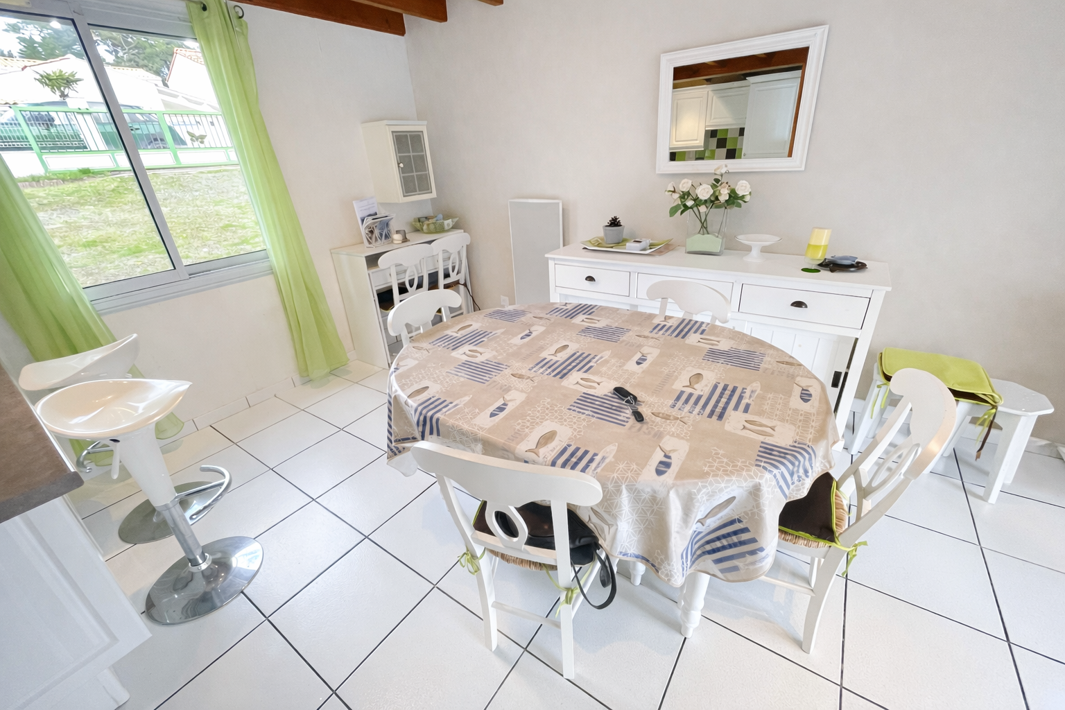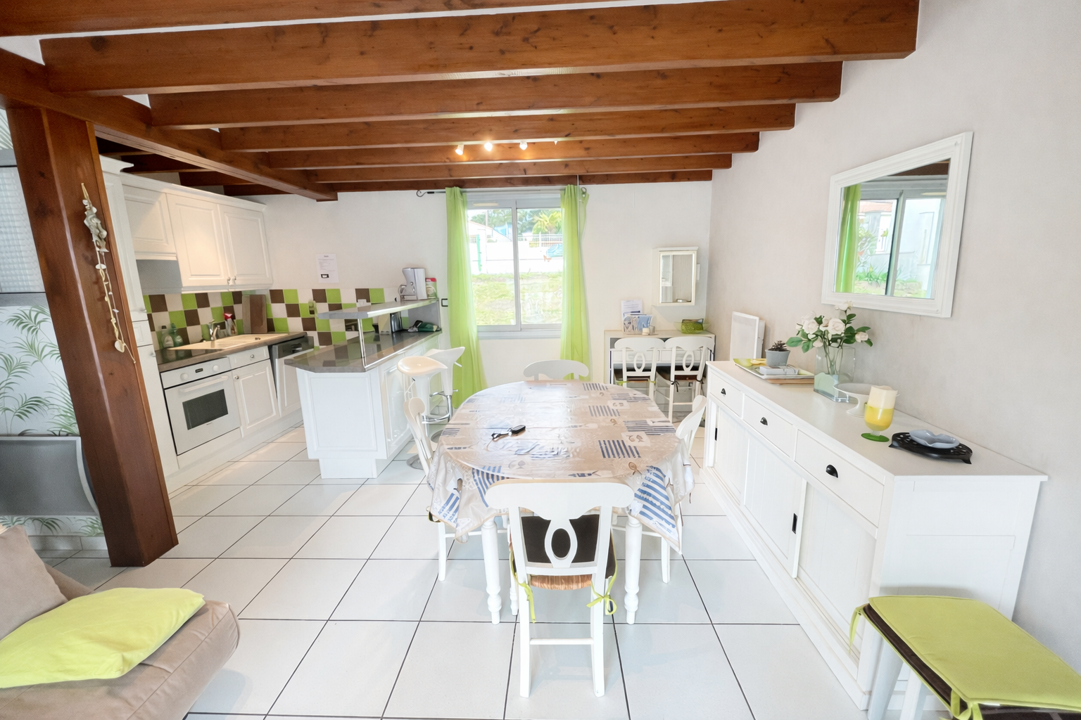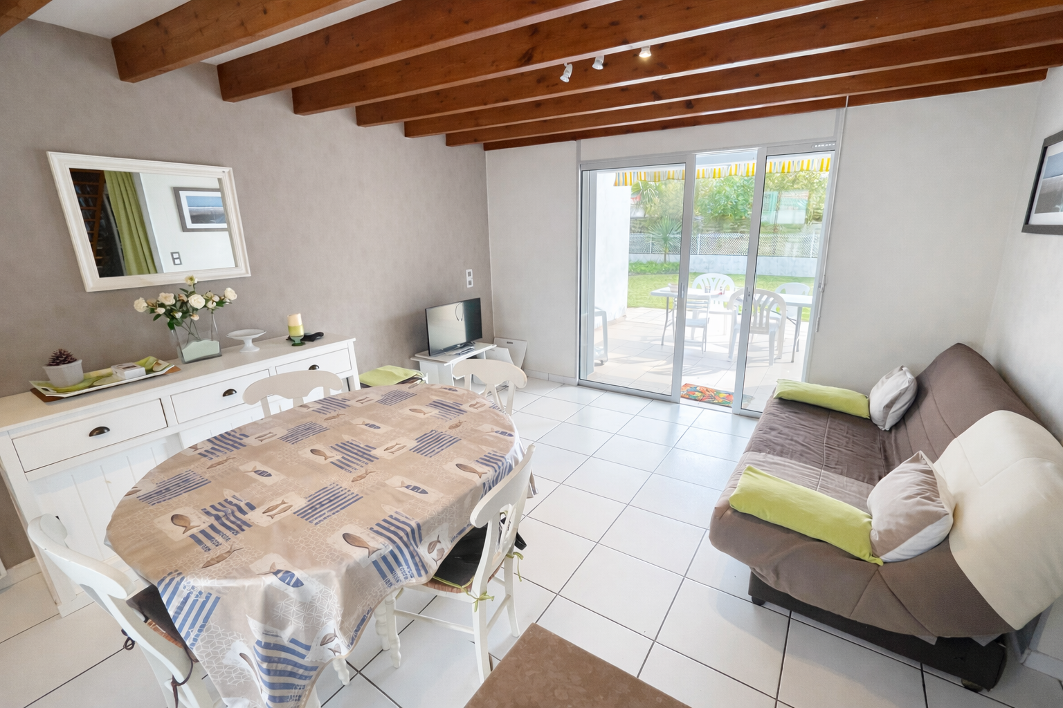 Equipements : four, lave-vaisselle, réfrigérateur-congélateur, plaques induction, micro-ondes, lave-linge, télévision. wifi. mobilier de jardin, caf. électrique, aspirateur... 2 emplacements voitures.