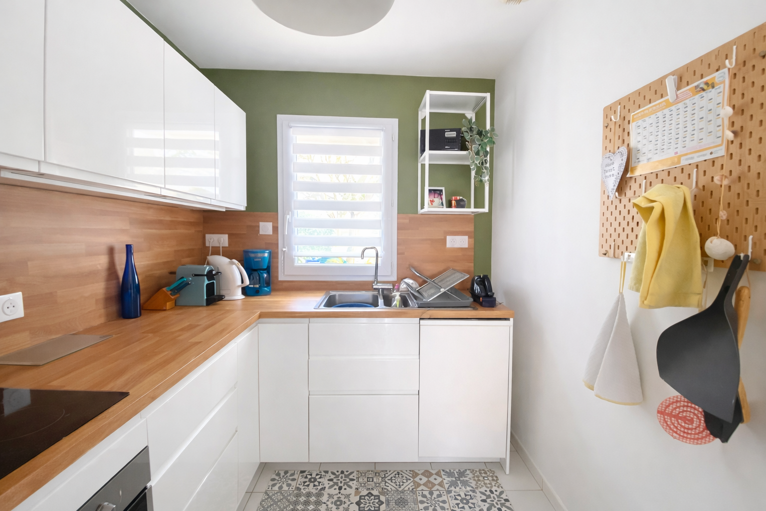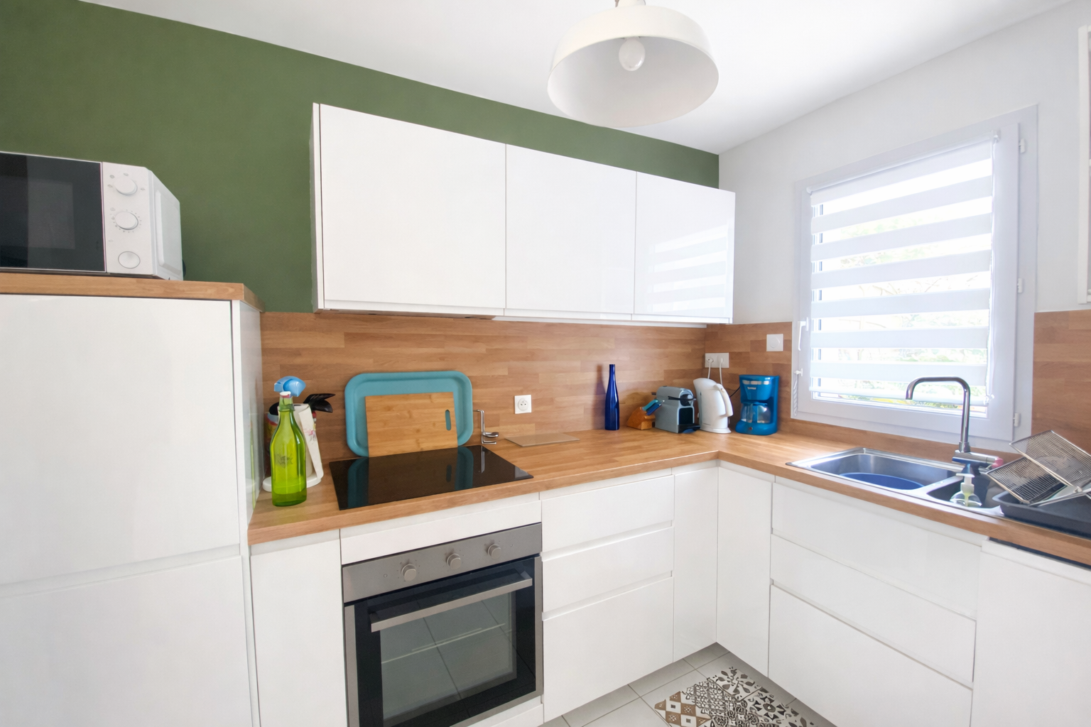 Equipements : réfrigérateur - freezer, 1 lave vaisselle 6 couverts, 1 plaque vitrocéramique, four électrique, 1 micro ondes , cafetière, bouilloire, lave linge , télévision, wifi. vaisselle couverts...