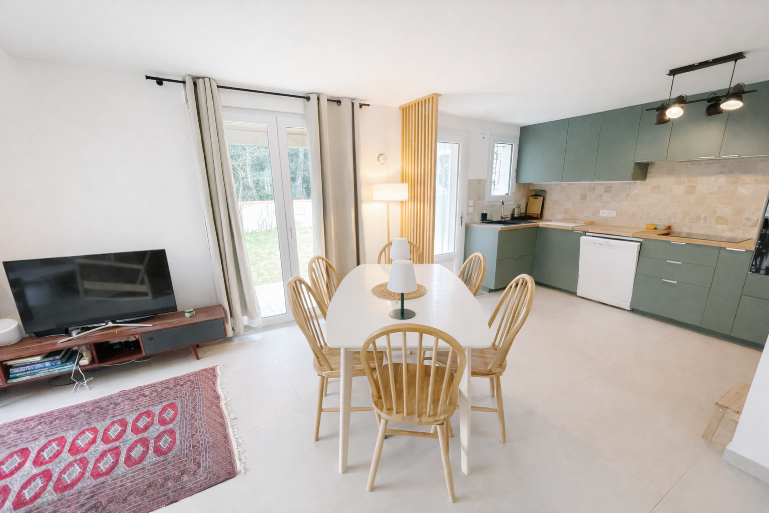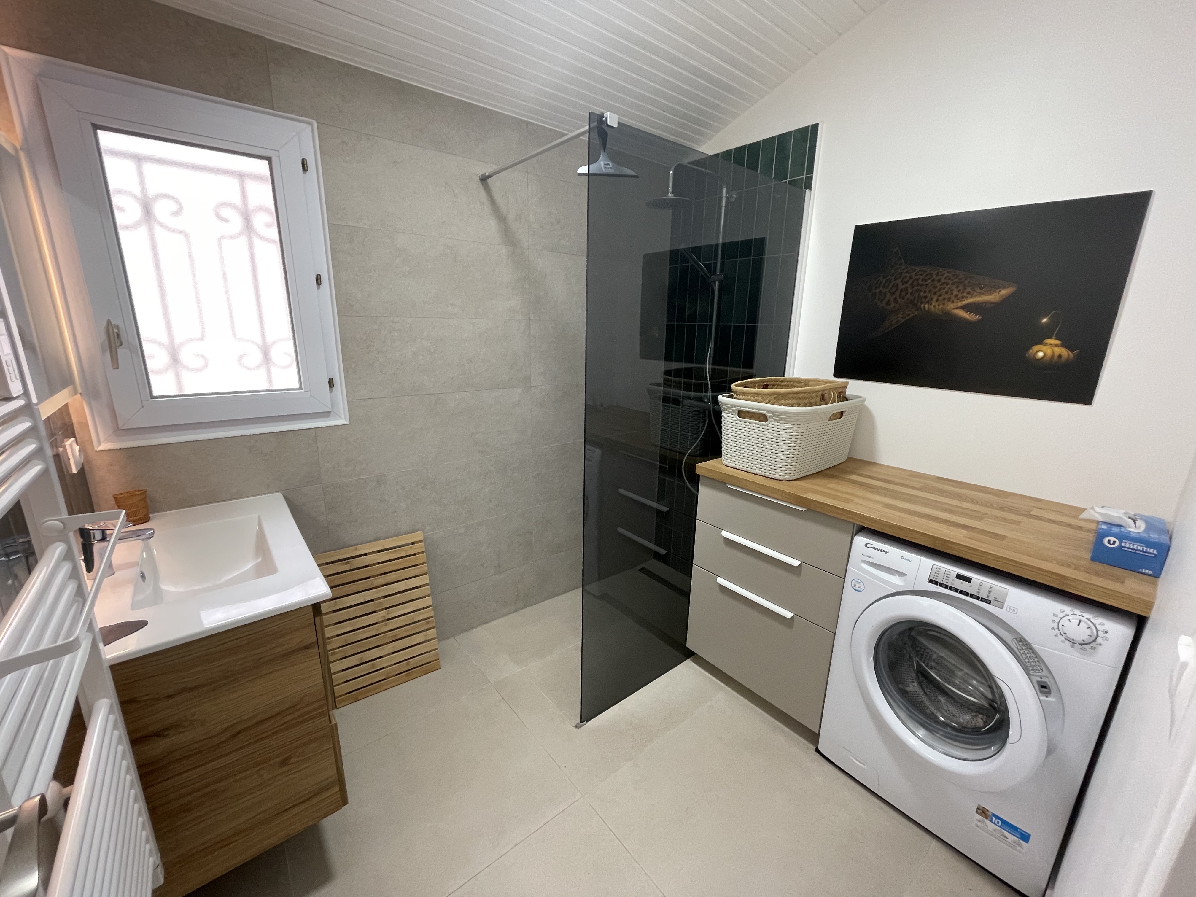 Equipements : réfrigérateur-congélateur, lave linge , lave vaisselle, plaque induction, four électrique , micro ondes, wifi, télévision,
