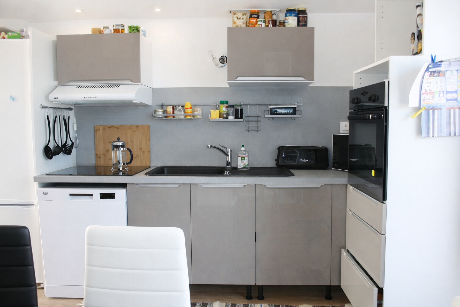 Equipements : 1 réfrigérateur-congélateur, plaque vitrocéramique, lave vaisselle, lave linge, four, micro ondes, télévision