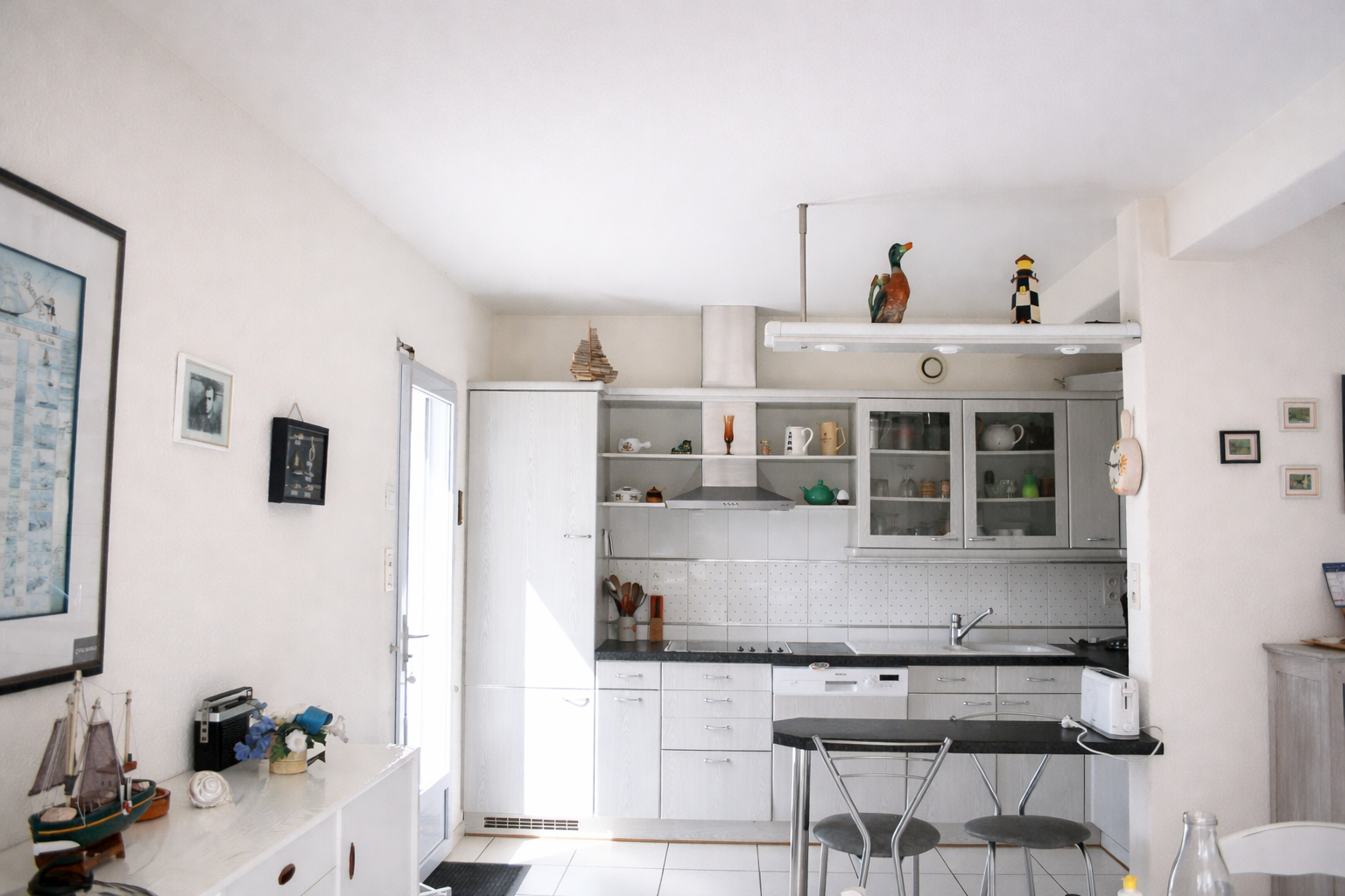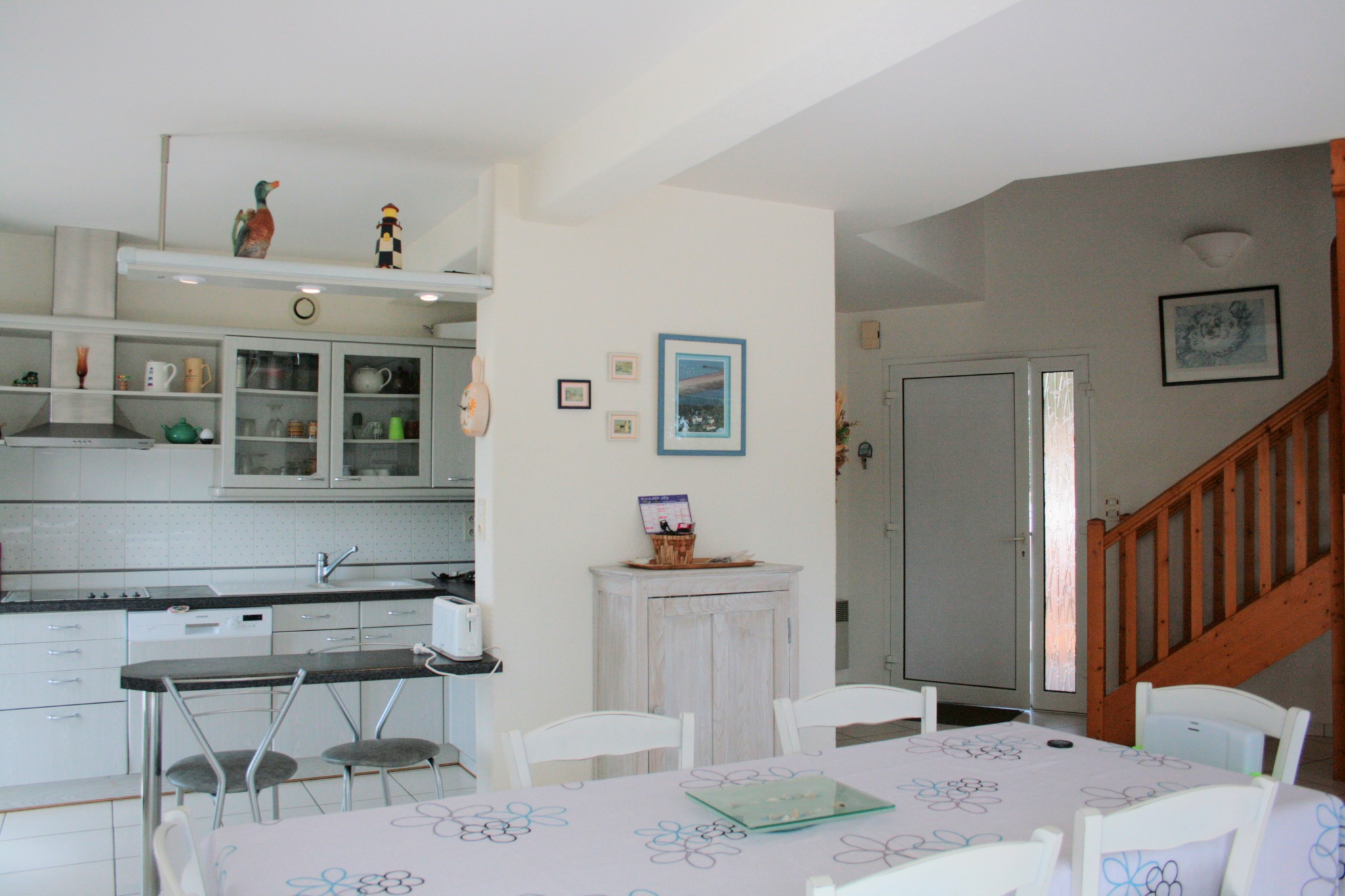 Équipements : 1 plaque vitro-céramique, 1 four, 1 micro-ondes, 1 cafetière électrique, 1 réfrigérateur-congélateur, 1 lave-vaisselle, 1 lave-linge, 1 cheminée (uniquement décorative), 1 aspirateur, 1 salon de jardin et 1 barbecue. wifi